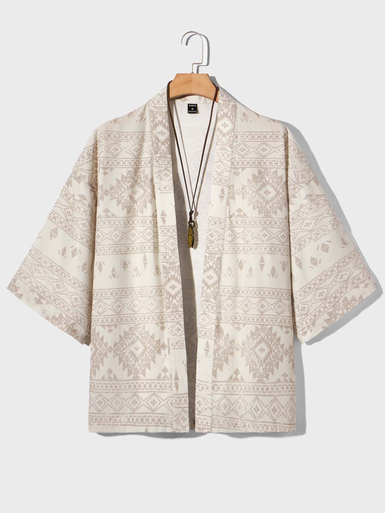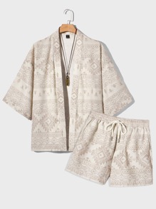 GENTILAND Guys Geo Print Kimono & Shorts Without Tee