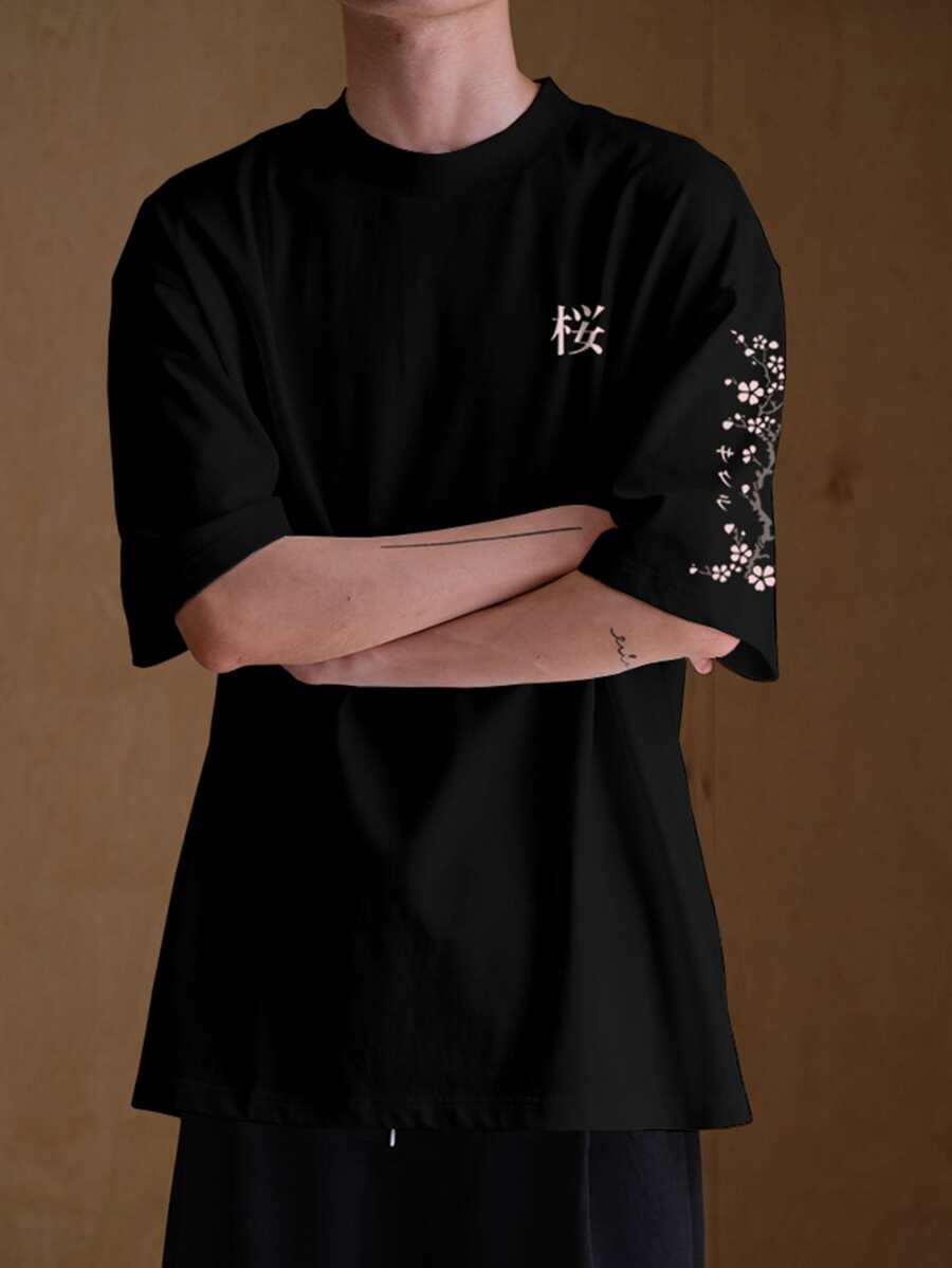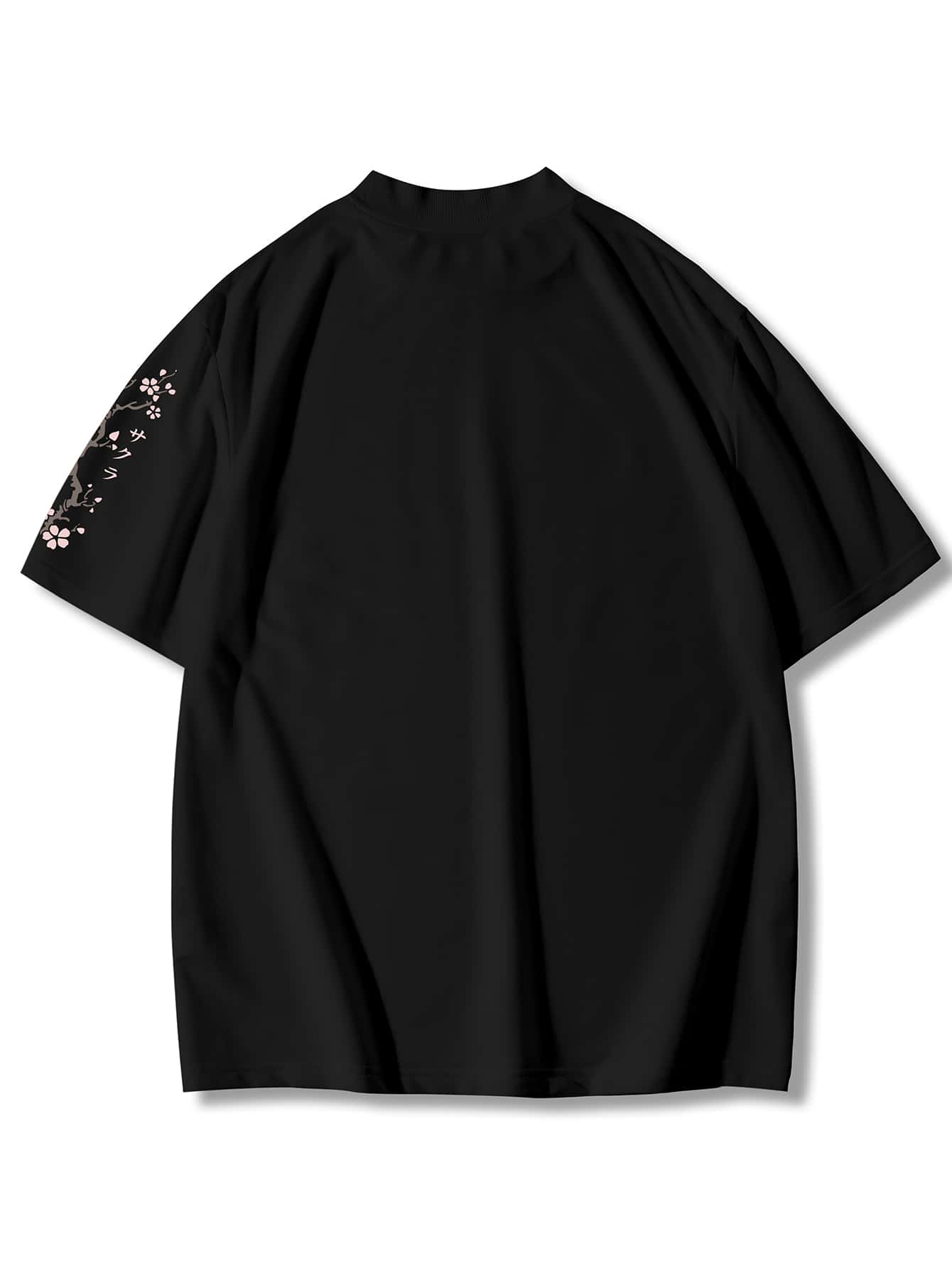 Guys Japanese Letter Graphic Mock Neck Tee