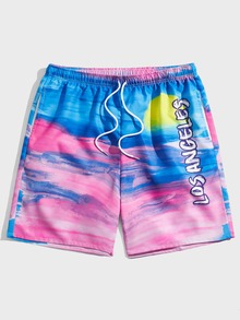 Guys Letter Graphic Drawstring Waist Shorts