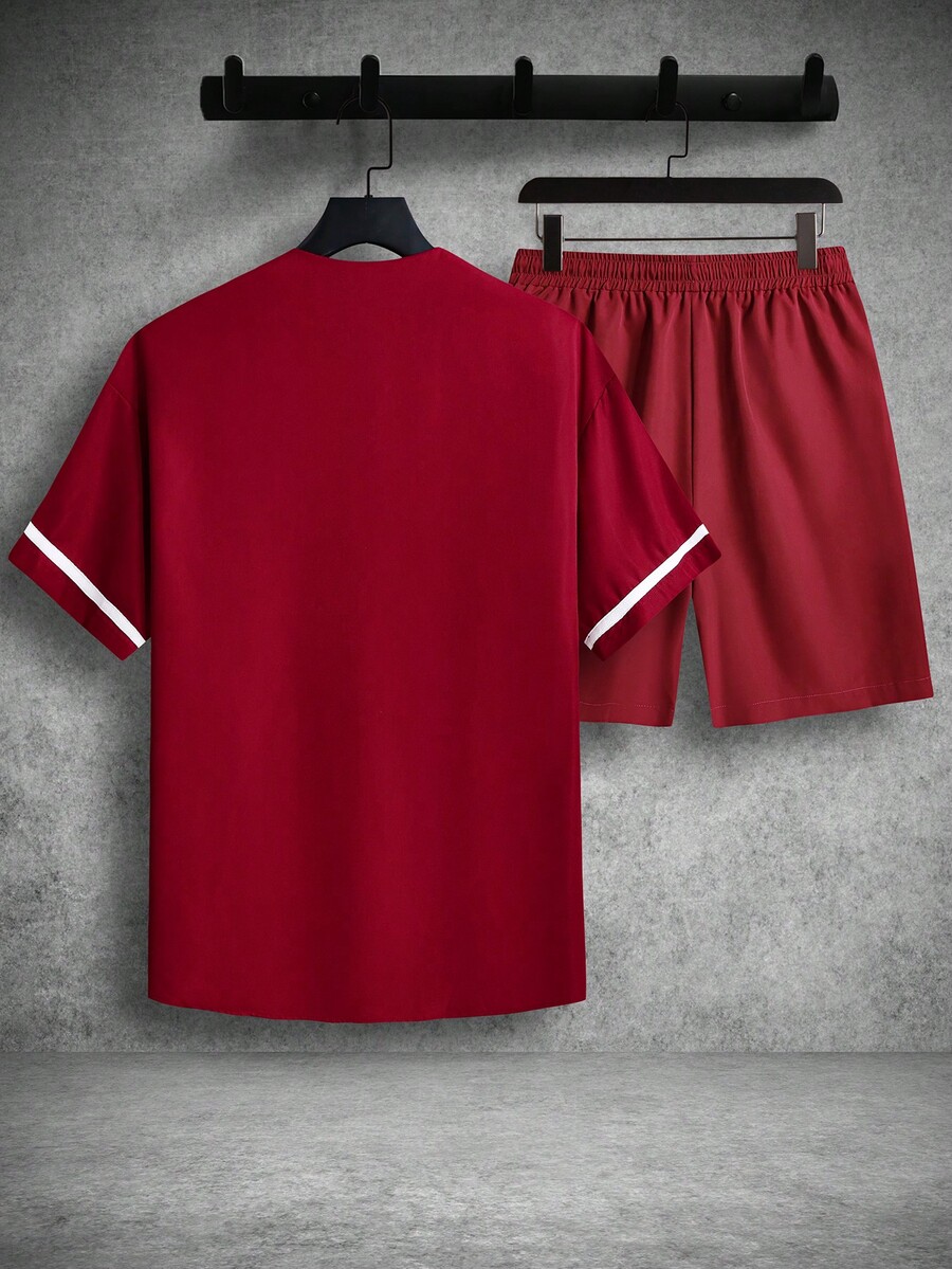 Guys Letter Graphic Shirt & Drawstring Waist Shorts