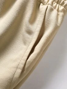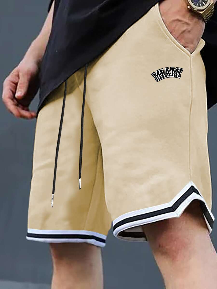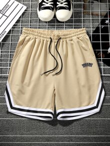 Guys Letter Graphic Striped Trim Drawstring Waist Shorts