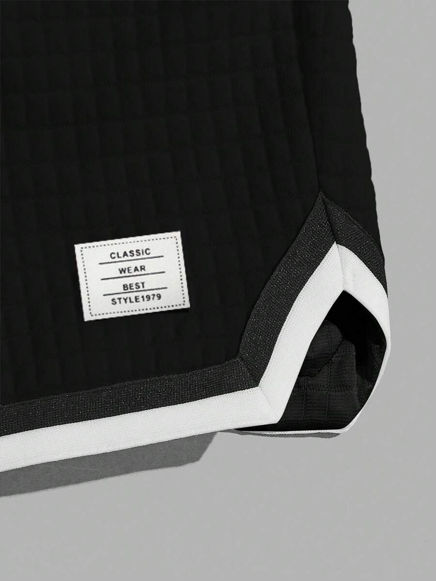 Guys Letter Patched Detail Contrast Trim Drawstring Waist Shorts