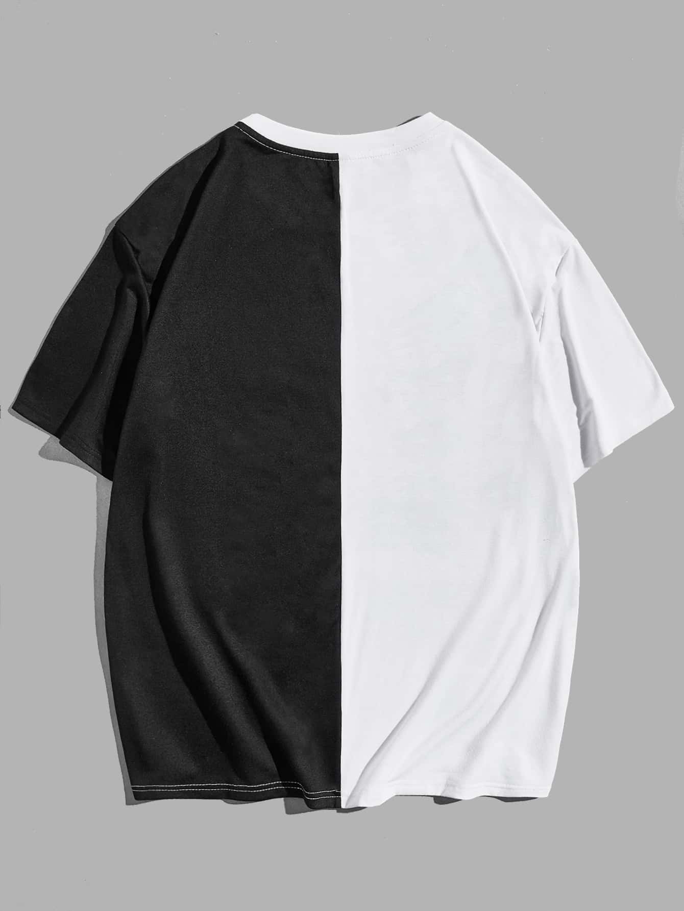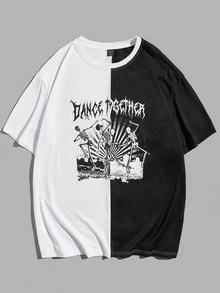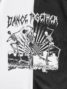 Guys Letter & Skeleton Print Two Tone Tee