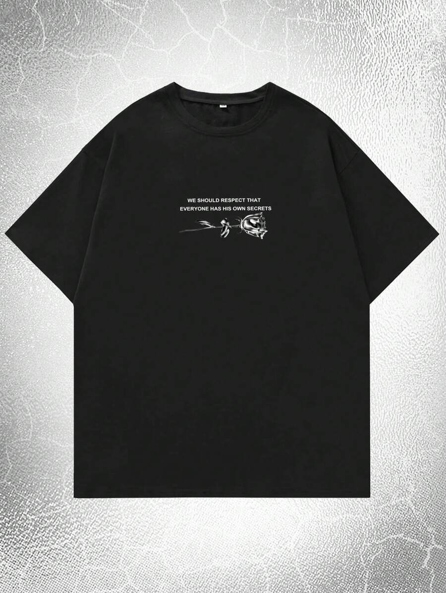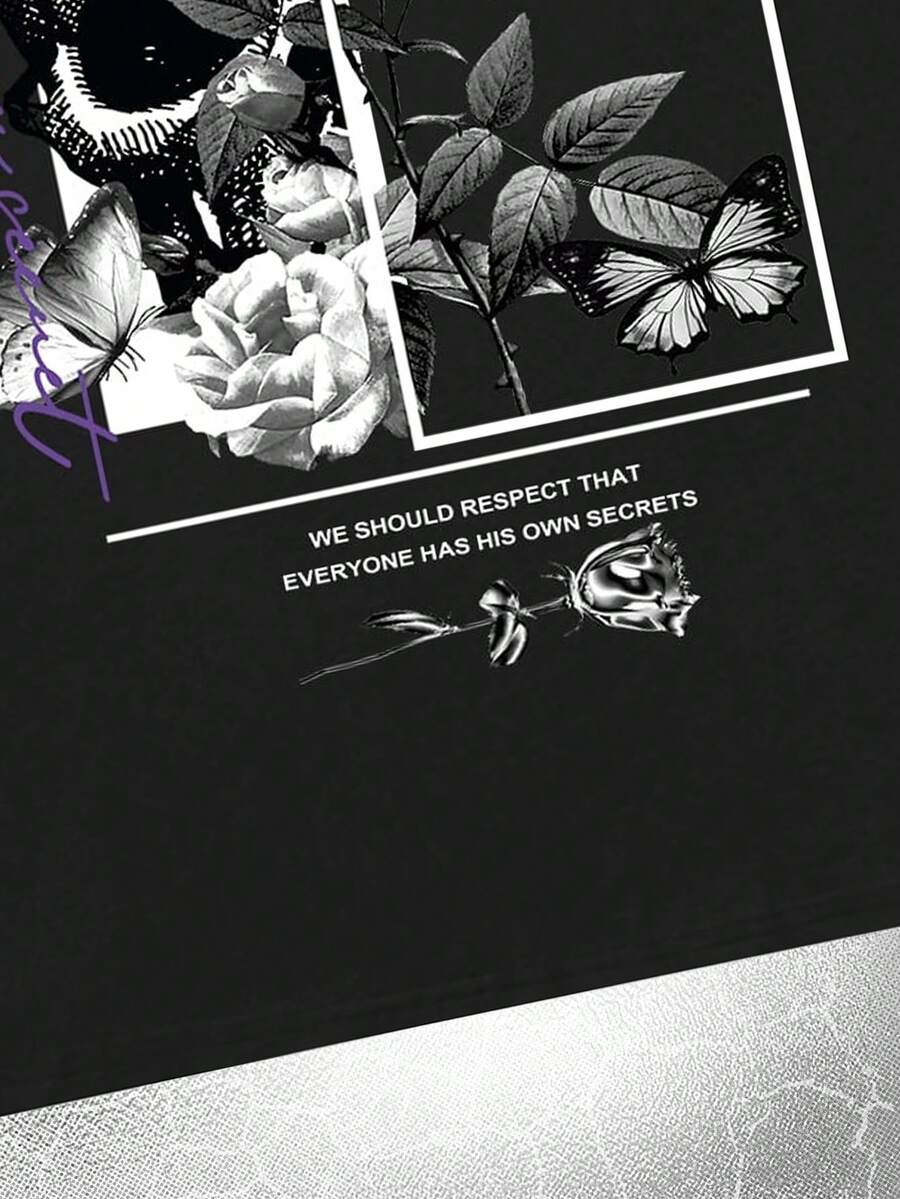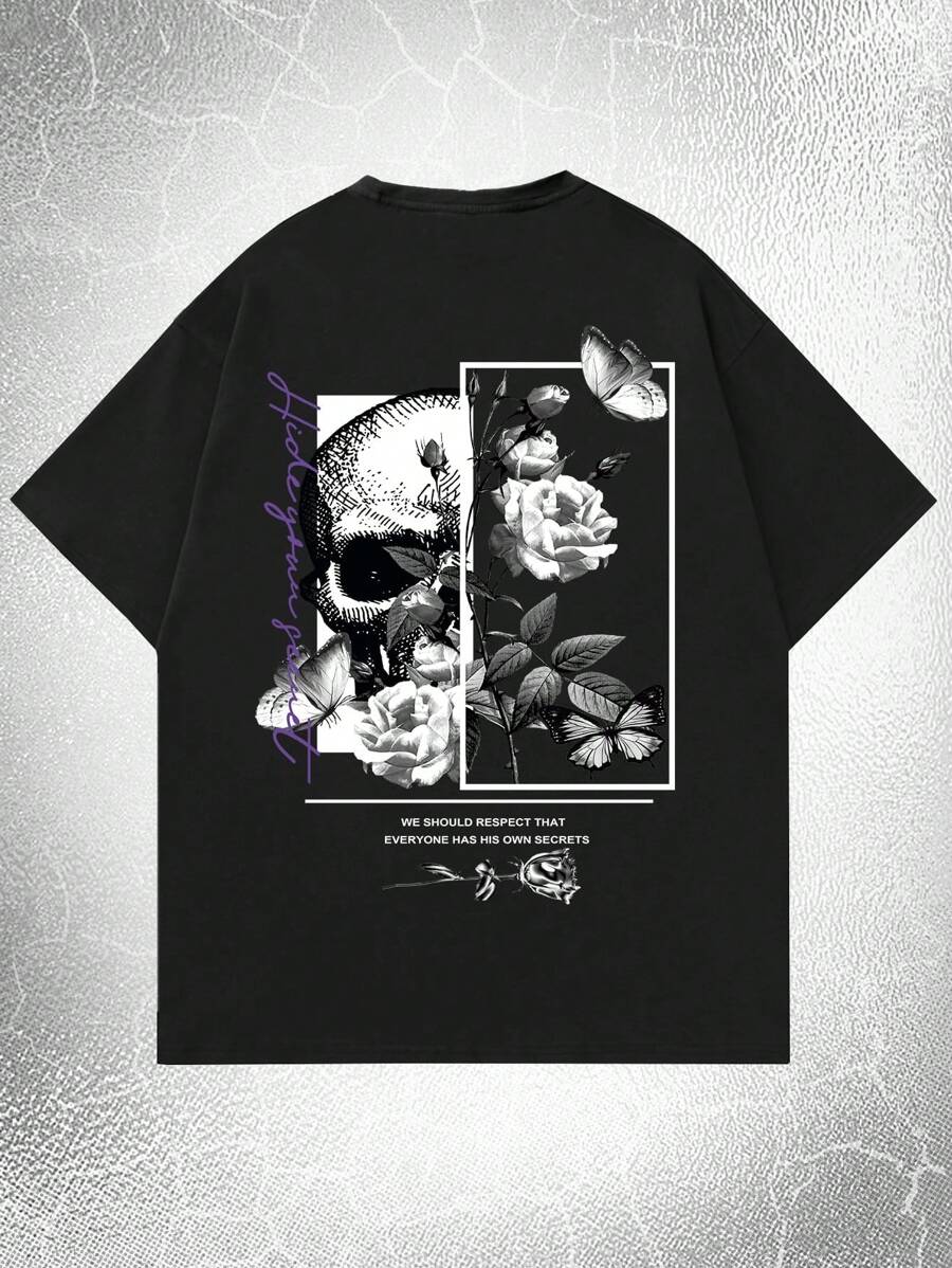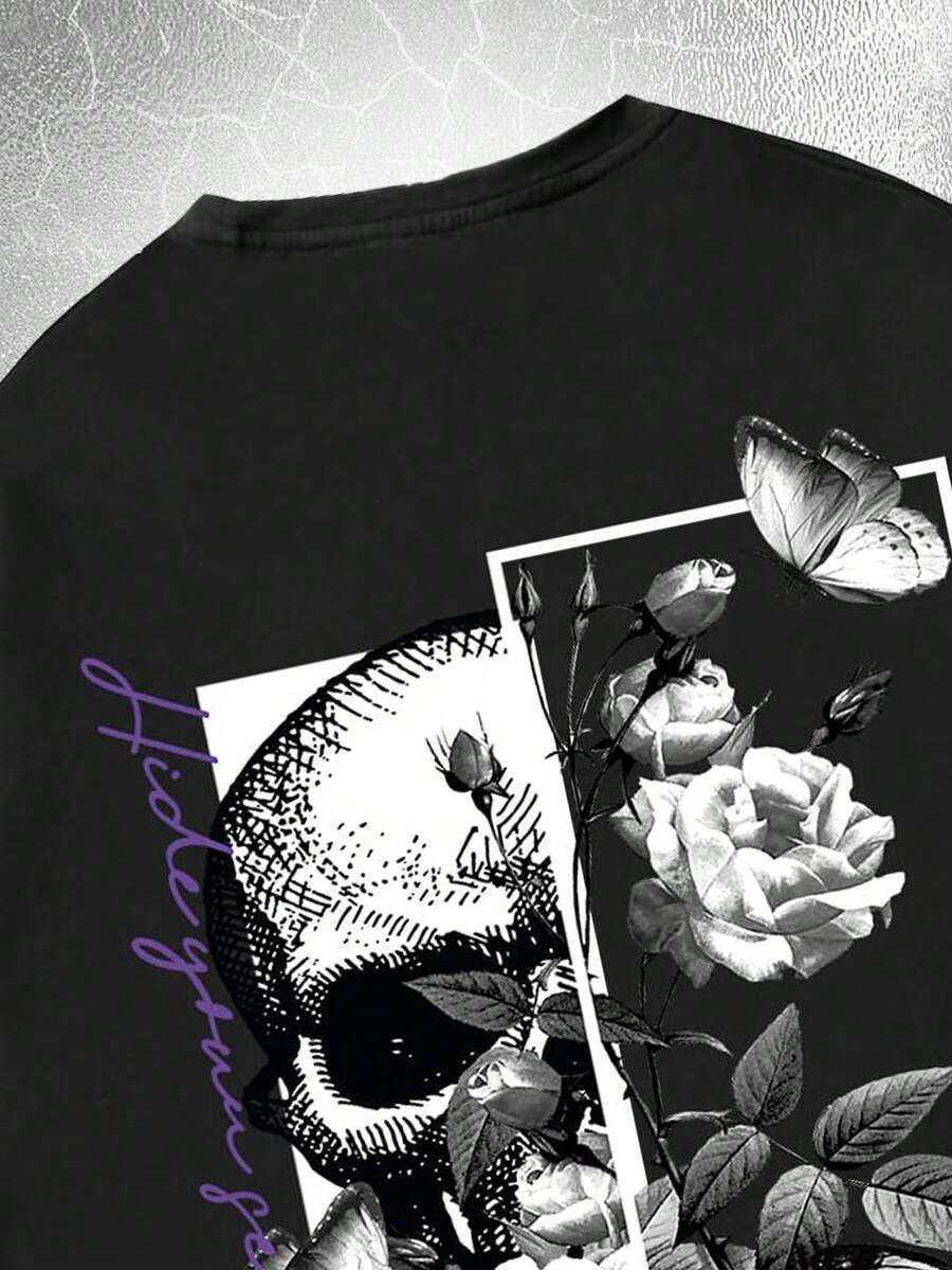 Goth Guys Letter Skull & Floral Graphic Tee
