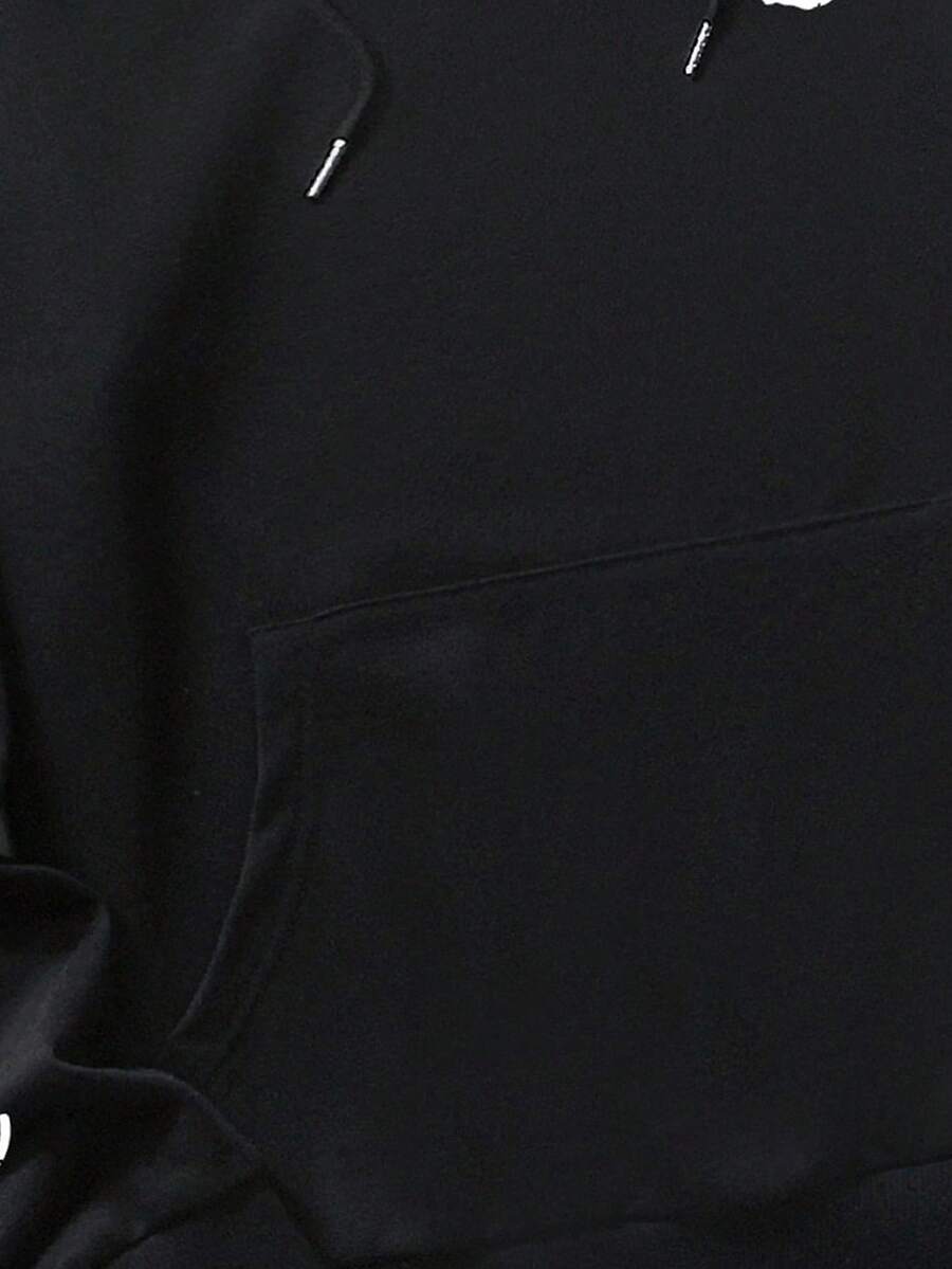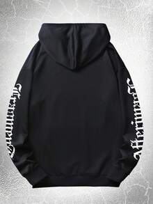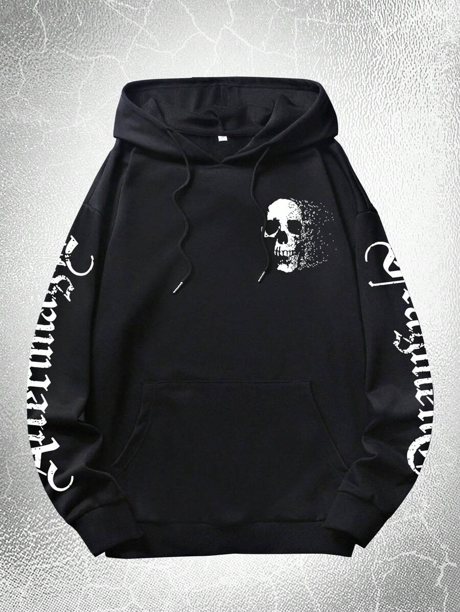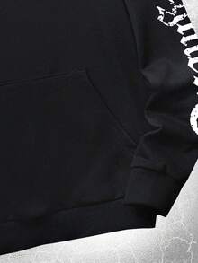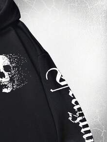 Goth Guys Letter Skull Graphic Drawstring Hoodie