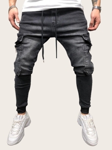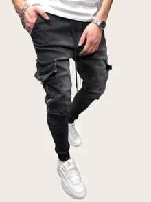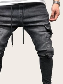 Guys Pocket Side Drawstring Waist Jeans