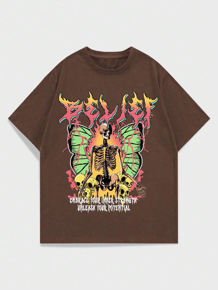 Guys Skull & Butterfly Print Tee