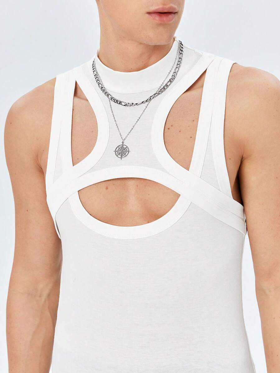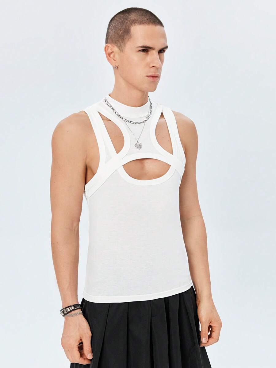 ROMWE Avant Guys Solid Cut Out Tank Top