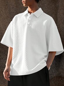 Guys Solid Drop Shoulder Polo Shirt