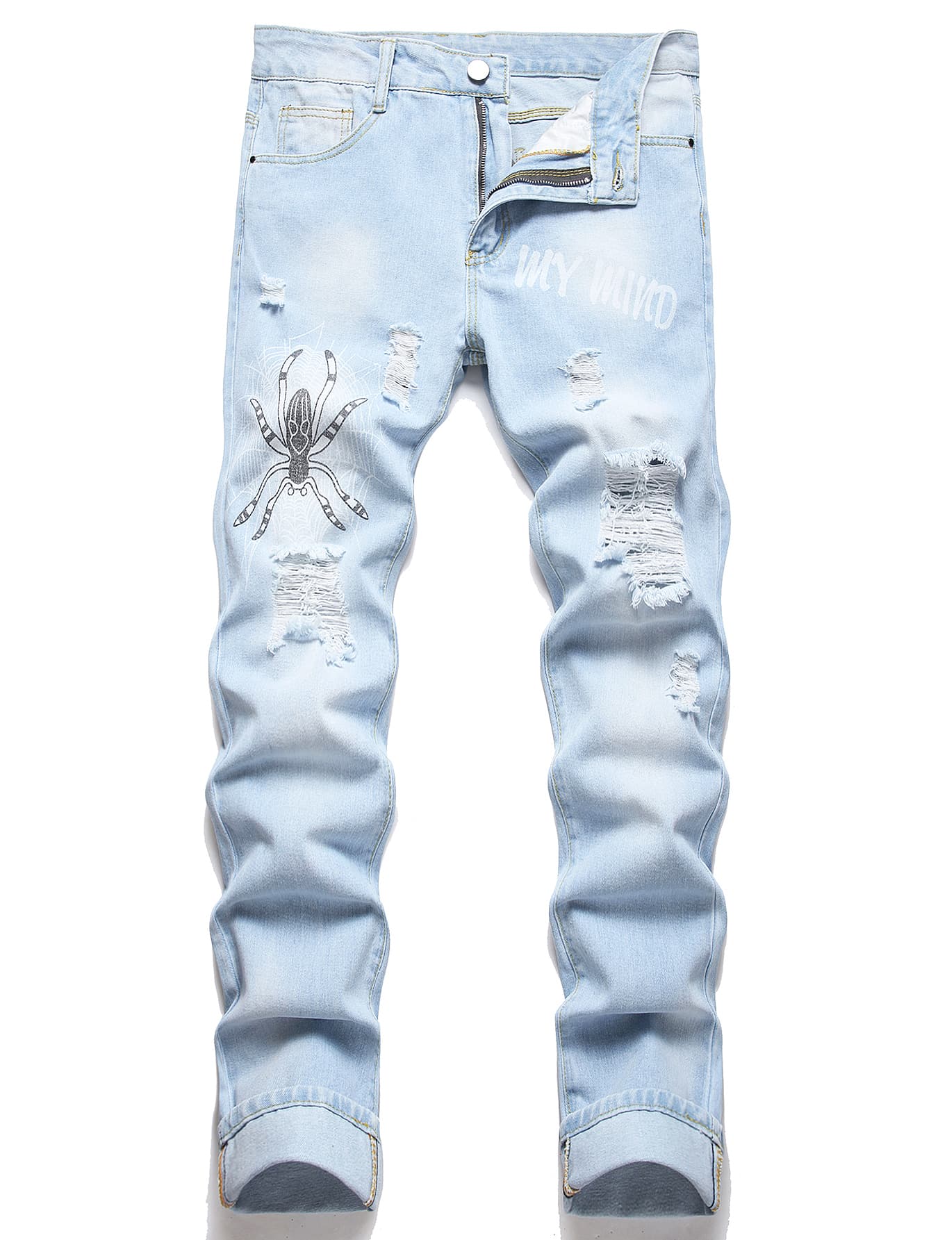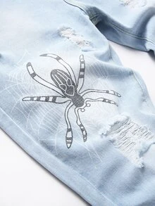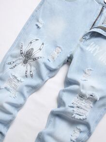 Guys Spider & Letter Graphic Ripped Jeans