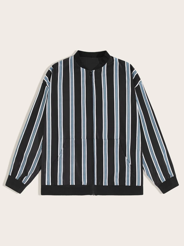 Guys Striped Pocket Front Bomber Jacket