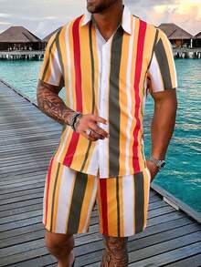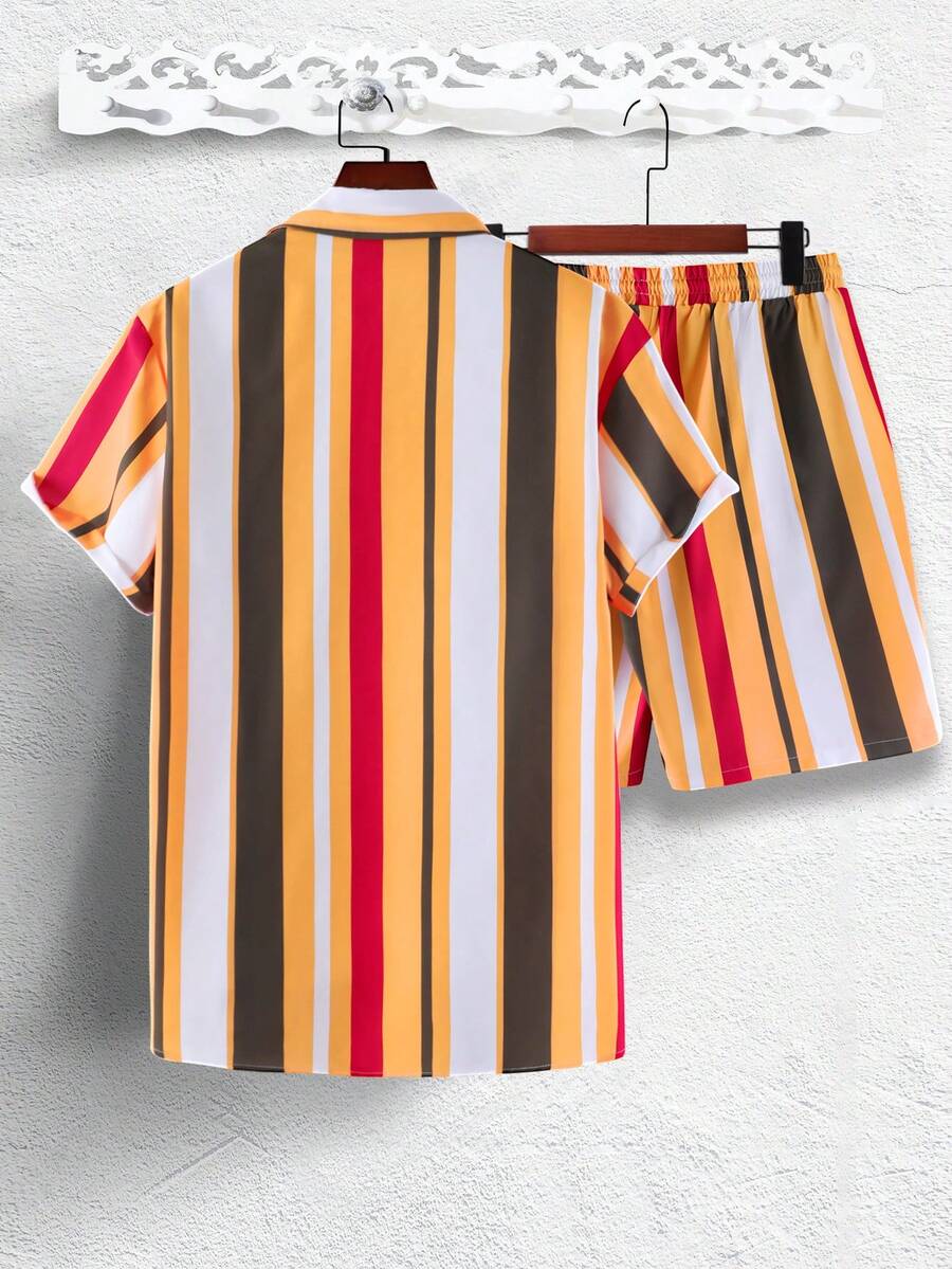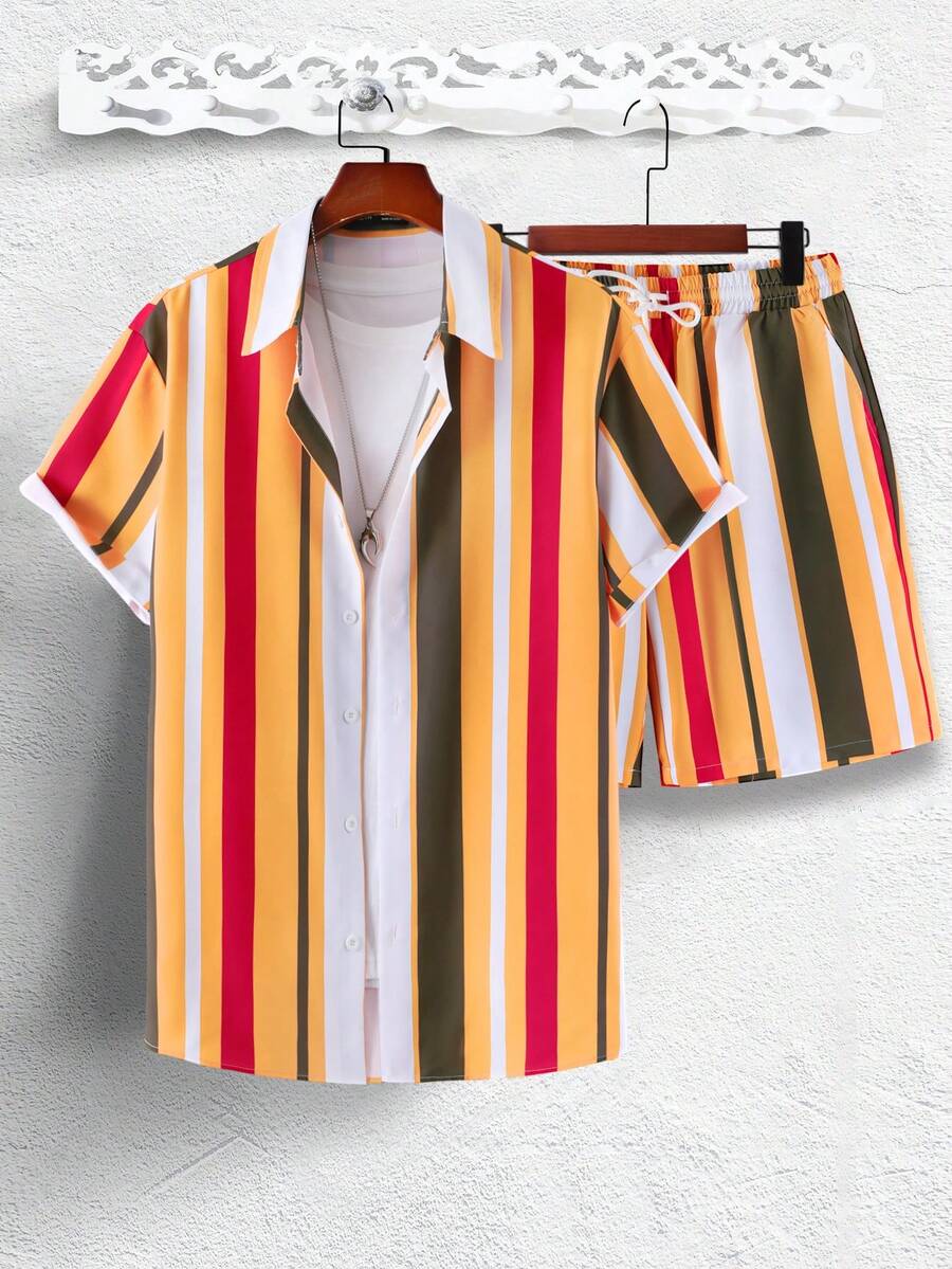 Guys Striped Shirt & Drawstring Waist Shorts Without Tee