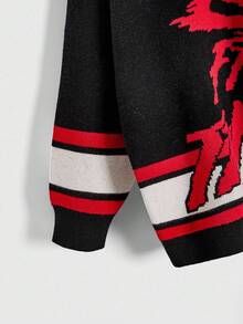 Friday the 13th X ROMWE Halloween Letter & Mask Pattern Oversized Sweater, Horror Vibe