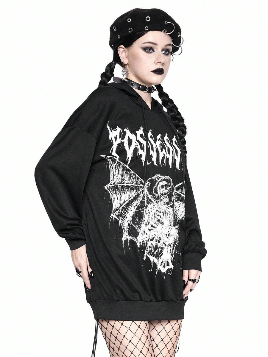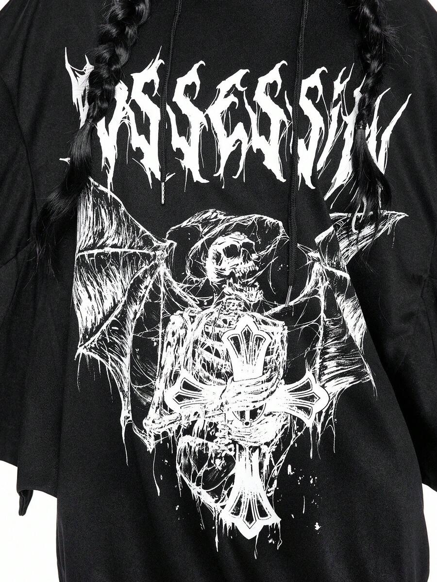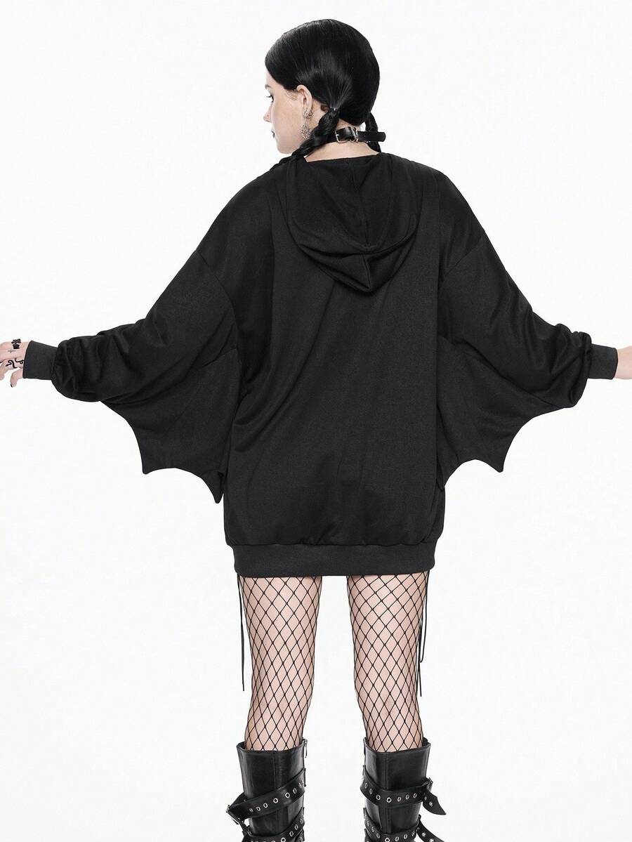 Halloween Women's Gothic Batwing Sleeve Print Hoodie Sweatshirt