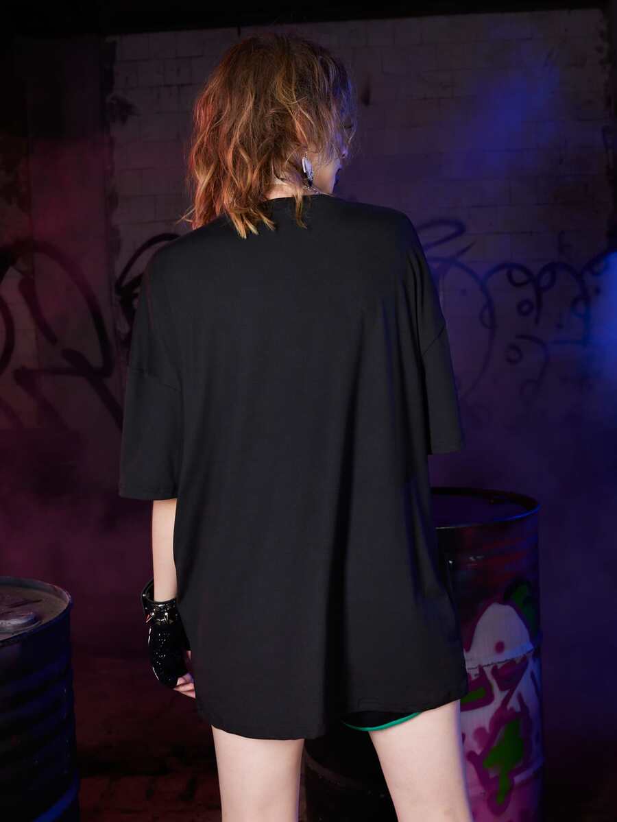 Harley Quinn | ROMWE Letter Figure Graphic Oversized Tee