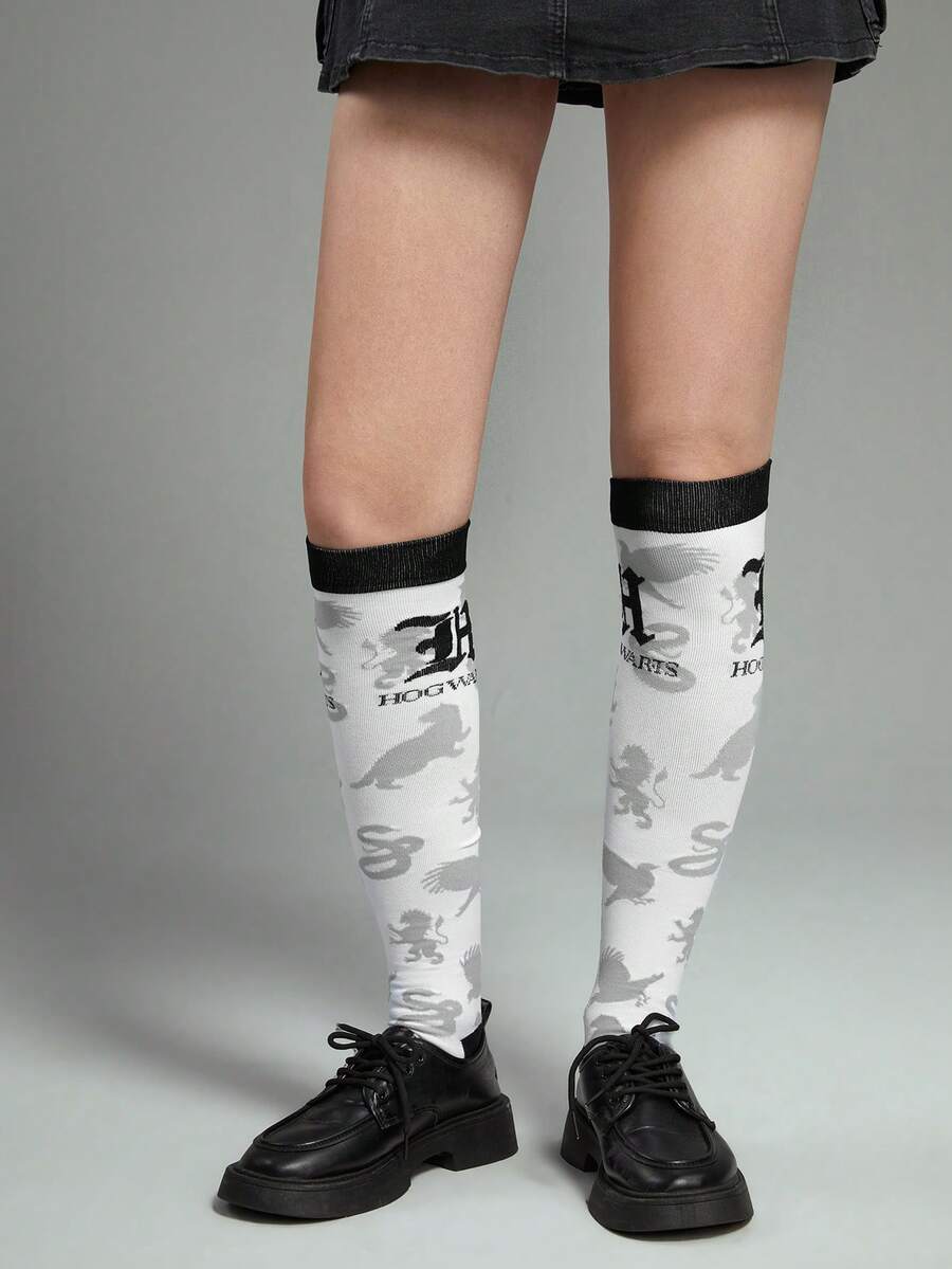 Harry Potter | ROMWE 1pair Women Striped & Letter Graphic Over the Calf Socks