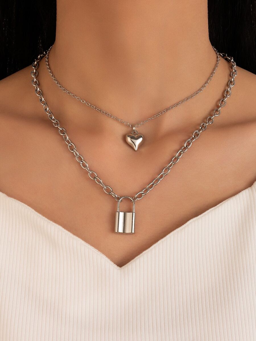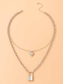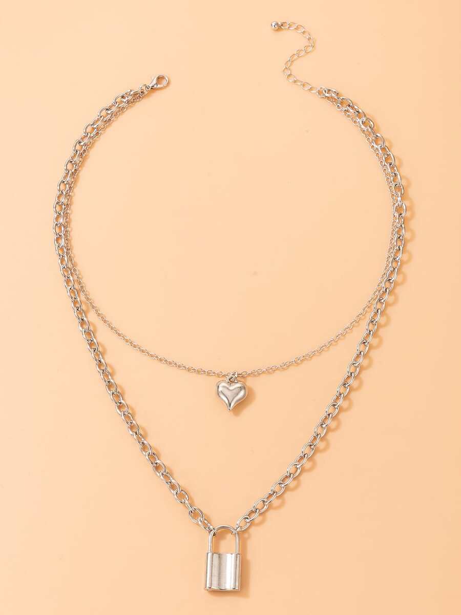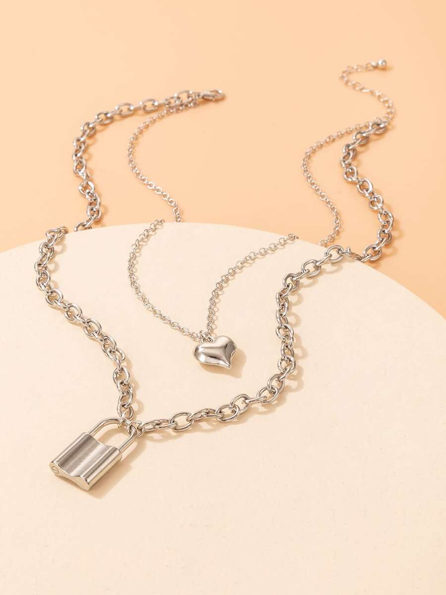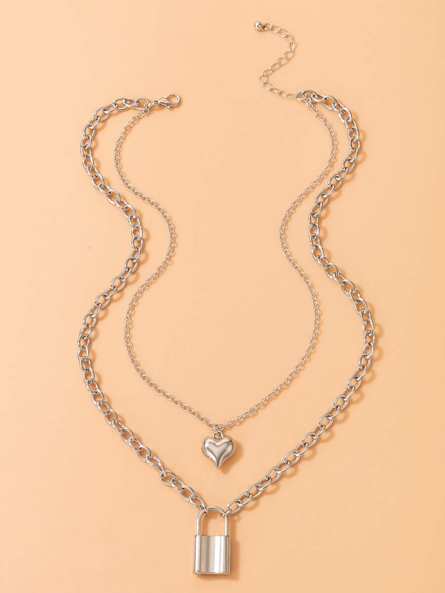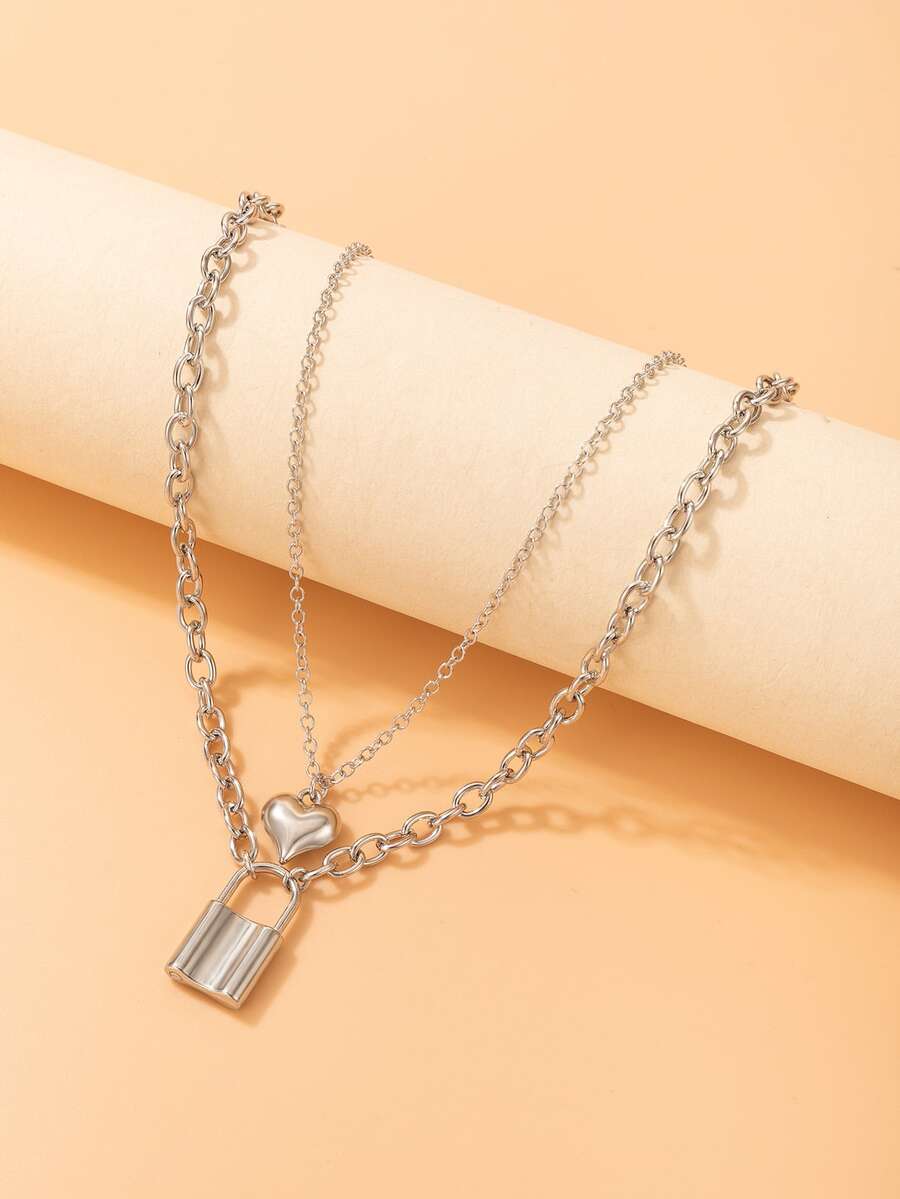 Heart & Lock Decor Layered Chain Necklace