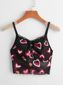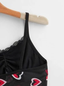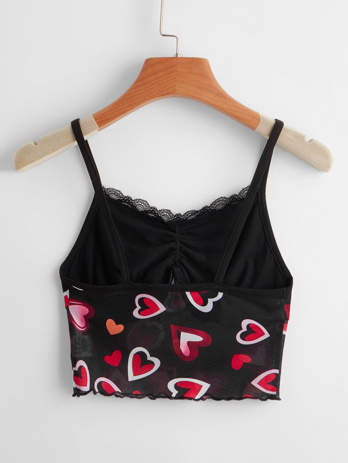 Heart Graphic Ruched Contrast Lace Crop Cami
