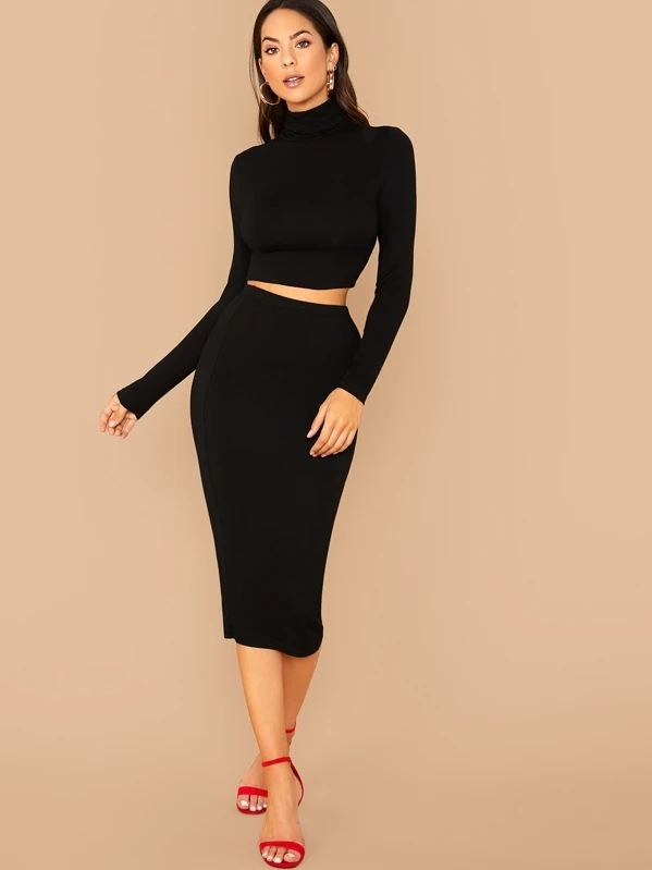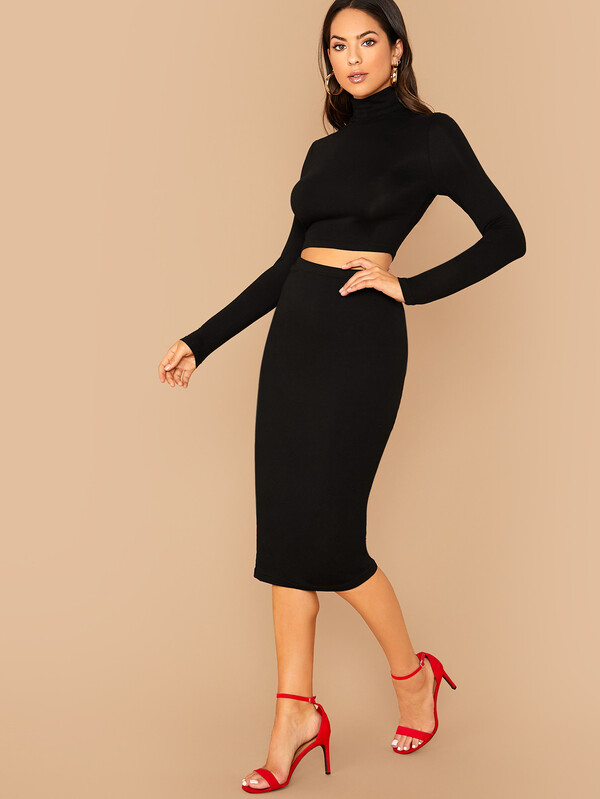 High Neck Fitted Tee and Pencil Skirt Set
