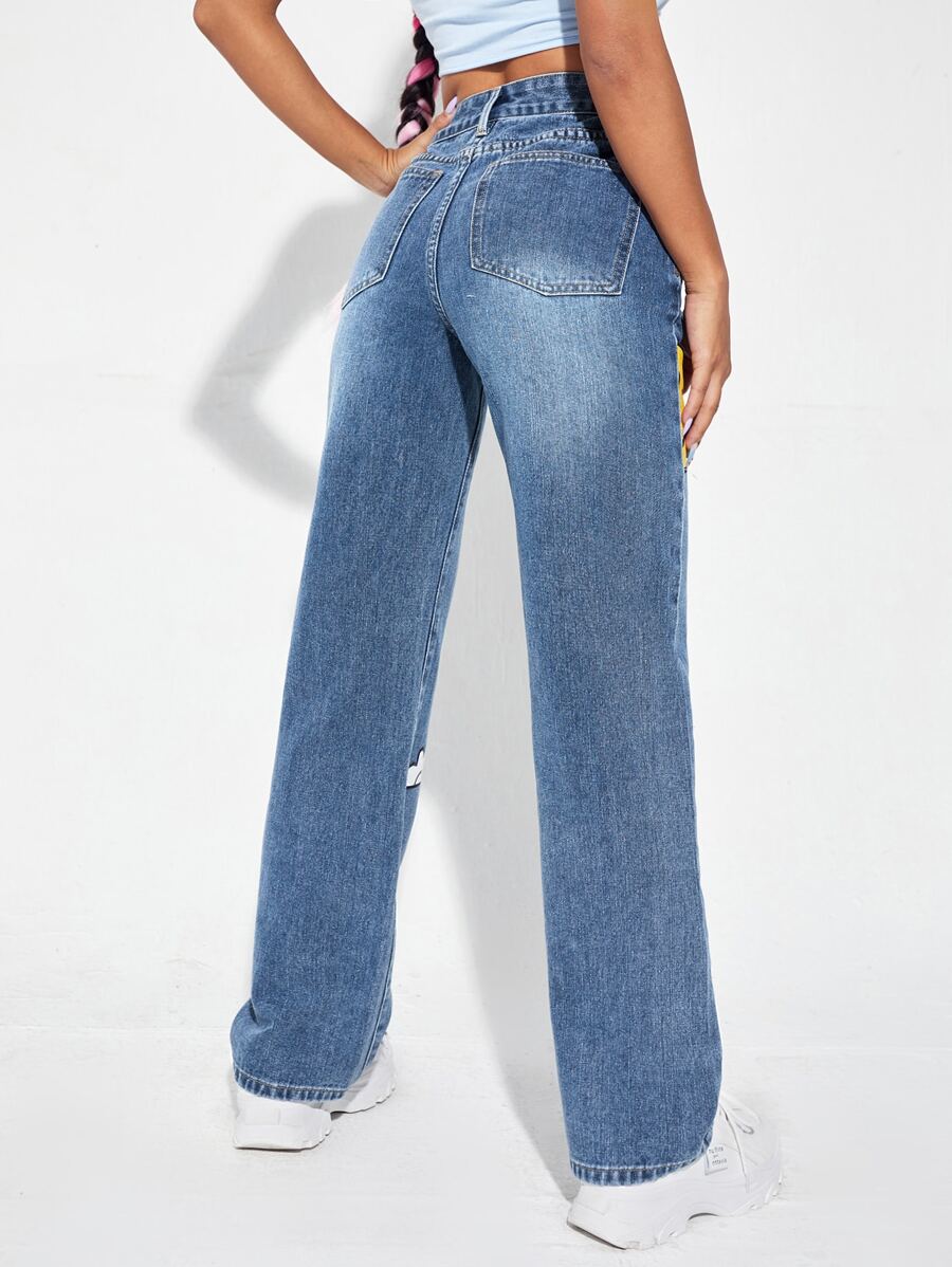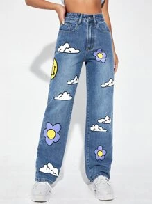 High Waist Cartoon Graphic Wide Leg Jeans