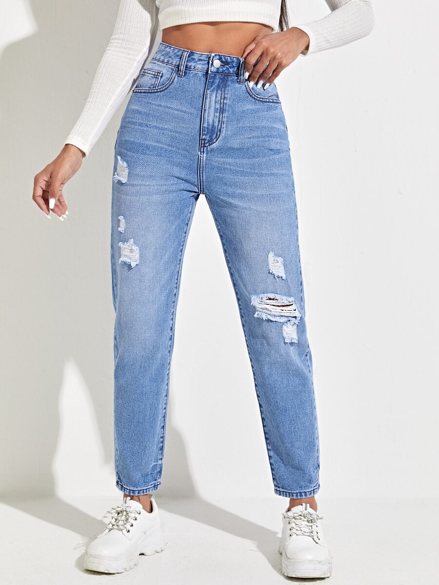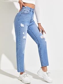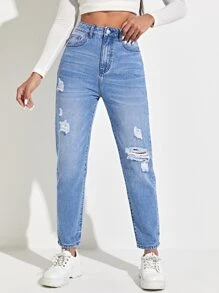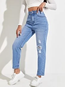 High Waist Ripped Mom Jeans