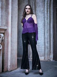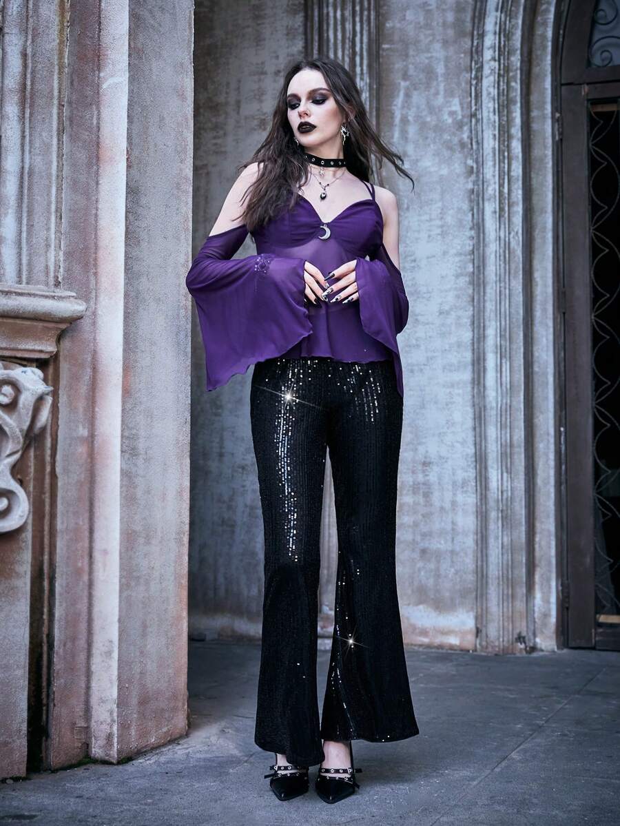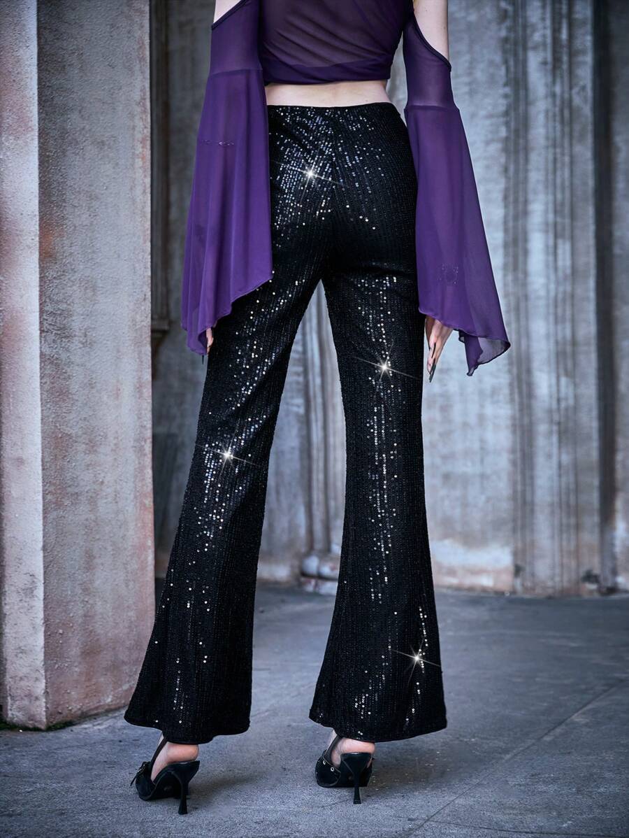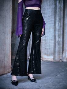 High Waist Sequin Flare Leg Pants