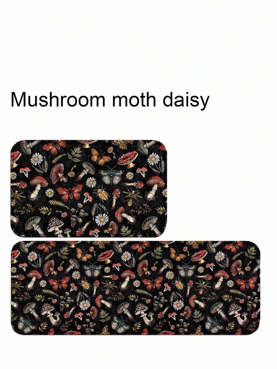 Hippie 1pc Gothic Mushroom Moth Rug - Non-Slip Kitchen Mat With Dark Floral Design, Waterproof Absorbent Floor Pad For Hallway, Bathroom & Altar Decor - Witchy Gothiccore, Dark Academia Home Essentials, Home Decor, Halloween