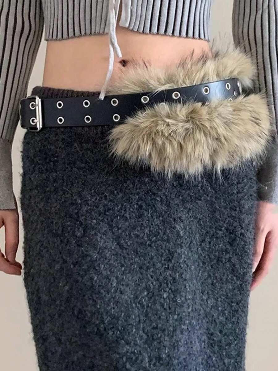 Hippie 1pc Punk Style Furry Patchwork Belt, Y2K Fashion Double Air Vents Leather Belt, Personalized Decoration Accessory