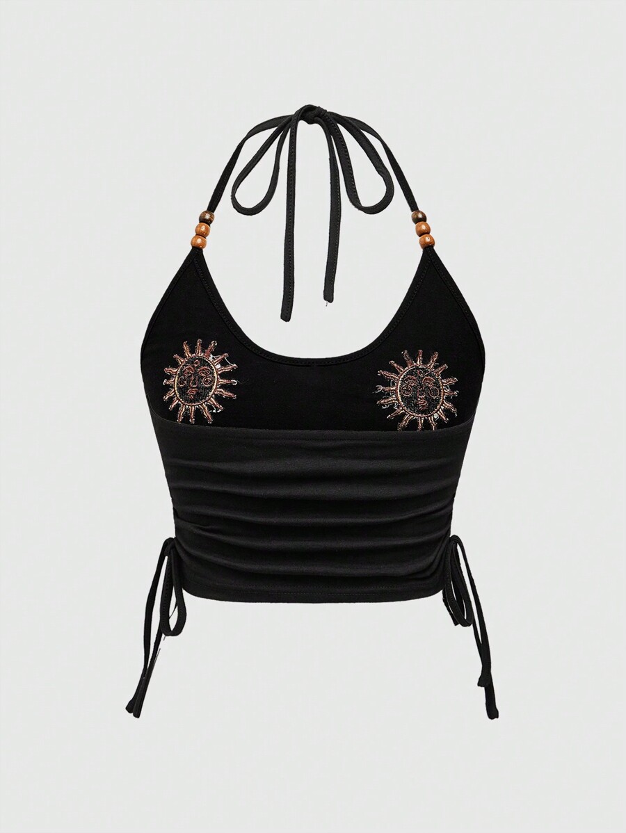 Hippie 2pcs Sun, Moon & Star Print Vacation Wear Halter Top And Skirt Set For Women