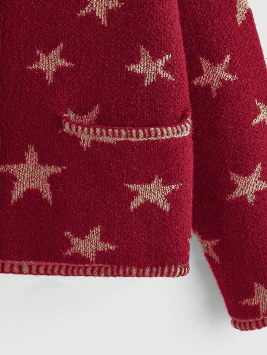 Hippie Autumn/Winter Casual Star Jacquard Double Pocket Button Front Cardigan