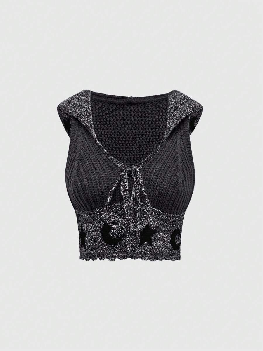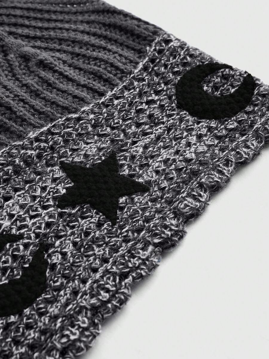 Hippie Bohemian Sun And Moon Graphic Hooded Knitted Sweater