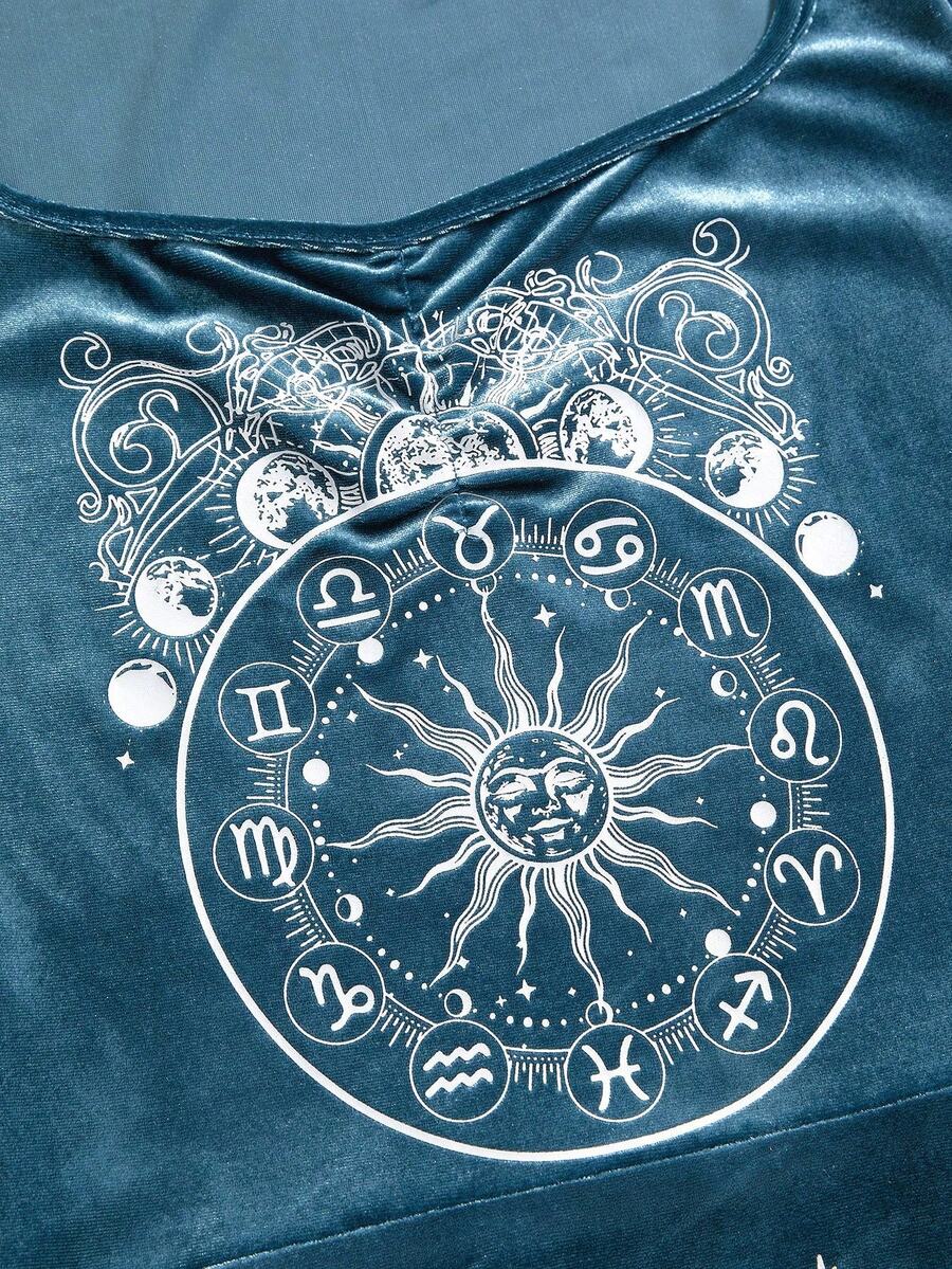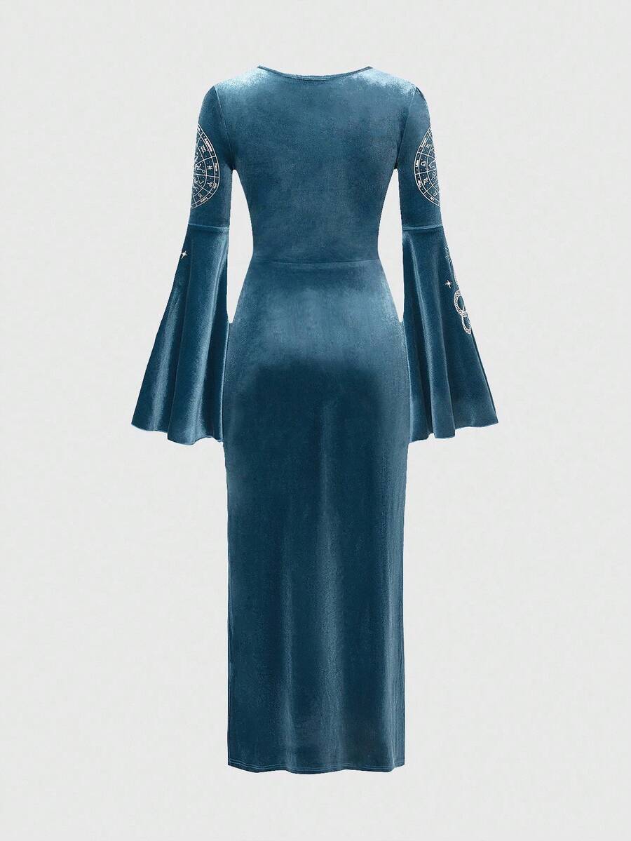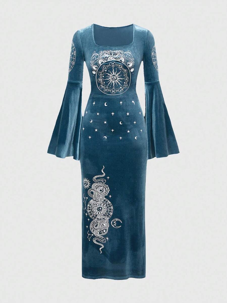 Hippie Halloween Moon & Star Velvet Print High Slit Dress