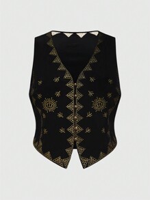 Plus Size Women's Hippie Star Embroidered Fashion Vest For Summer