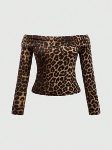 Hippie Plus Size Women's Vintage Off-Shoulder Sexy Leopard Print T-Shirt