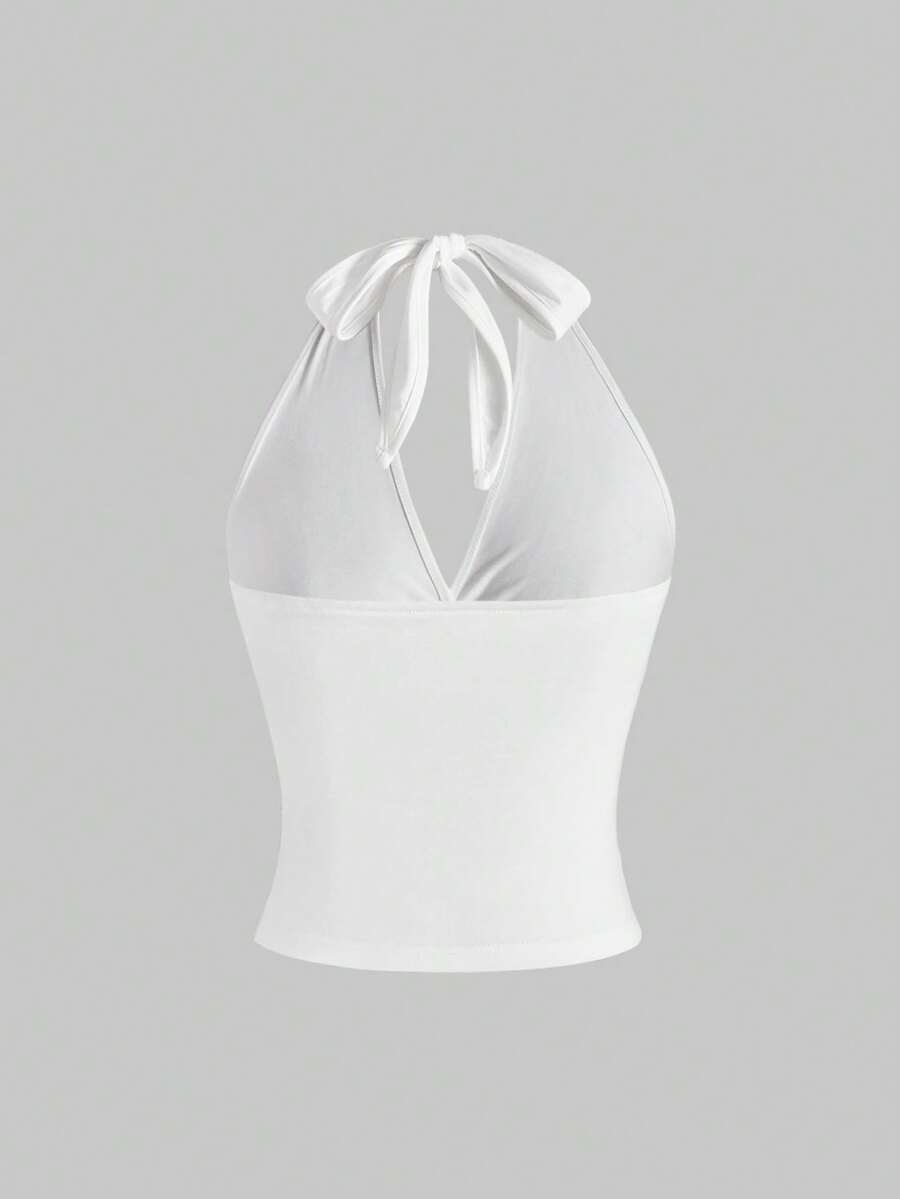 Hippie SummervacationwhiteSpring/SummergraphicwhiteSexy Summer Halter Neck Bowknot Tie Strap Embroidered Floral Low-Cut Coffee Color Women Camisole