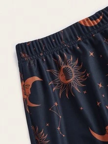 Hippie Sun & Moon Graphic Asymmetrical Hem Skirt