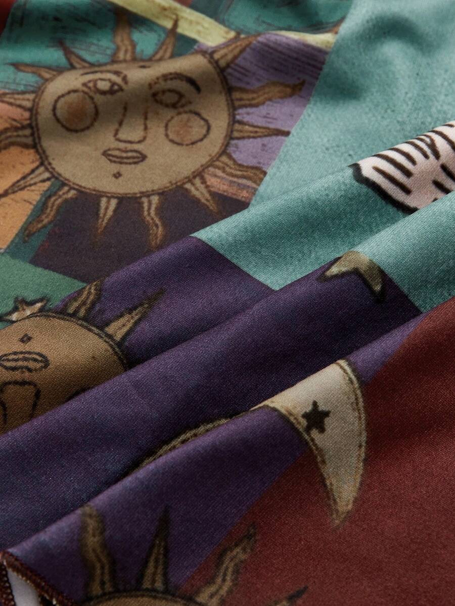 Hippie Sun & Moon Print Off Shoulder Tee