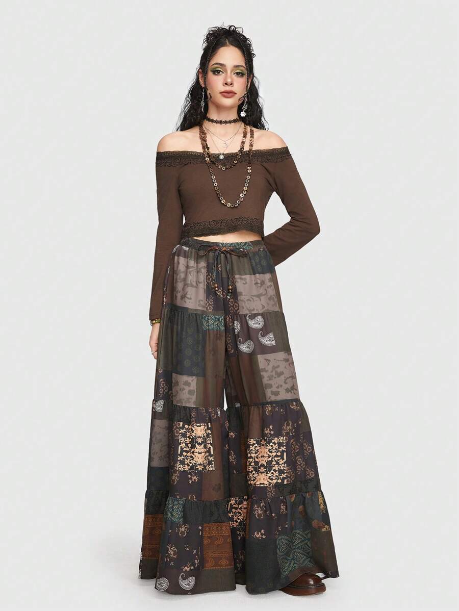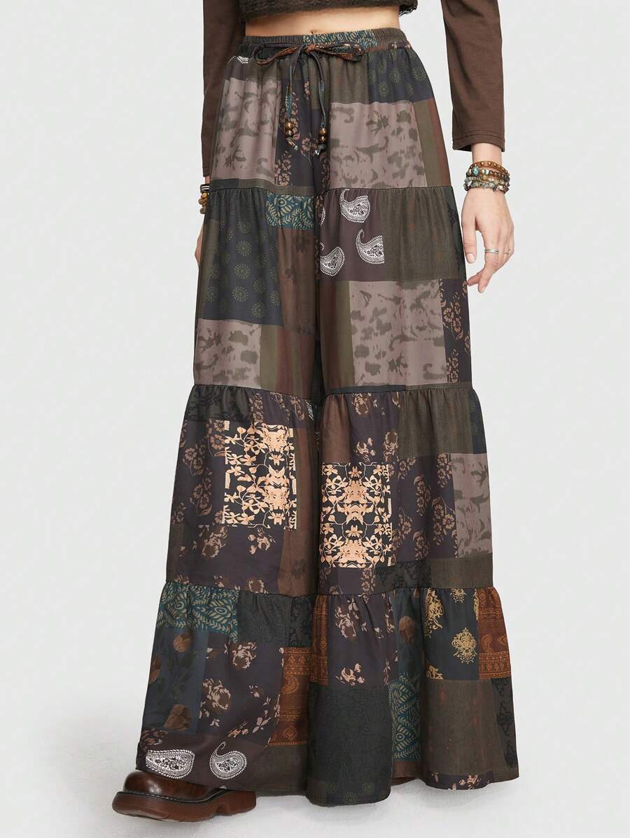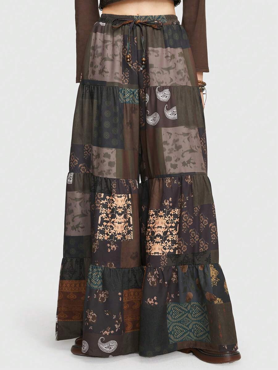Hippie Women's Patchwork Printed Wide Leg Pants