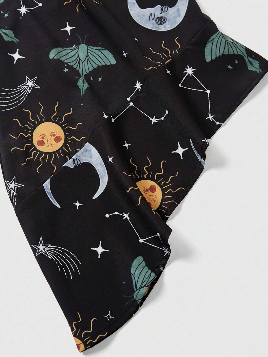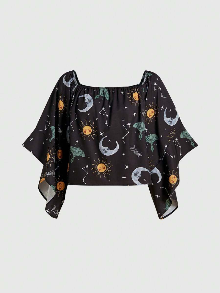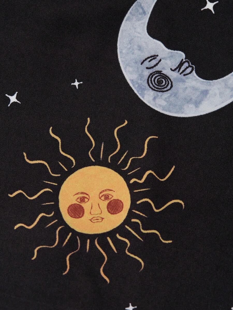 Hippie Women's Sun, Moon, Face Print Off Shoulder Shirt