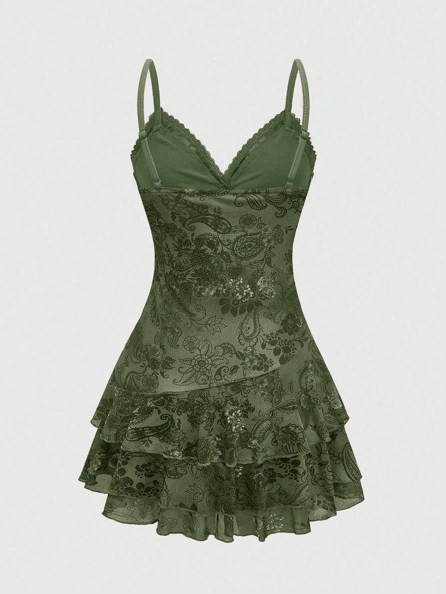Hippie Women's Vintage Bohemian Ruffled Ribbon Lace Paisley Print Mini Dress