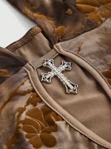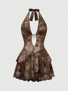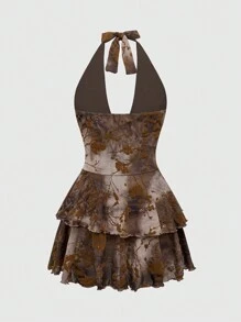 Hippie Women's Y2K Sexy Western Rodeo Cross Decor Halter Neck Tie-Up Back Jacquard Fabric Versatile Mini Dress