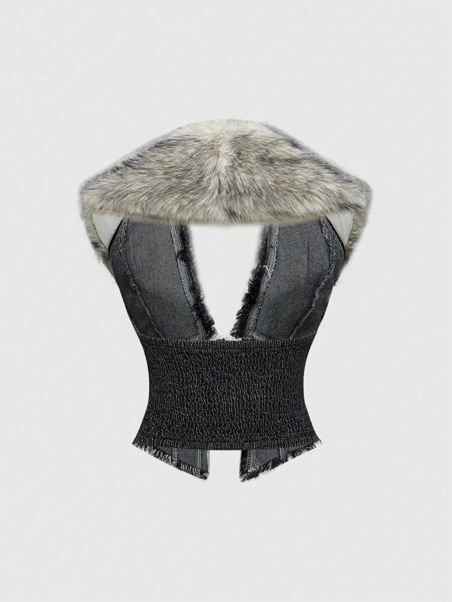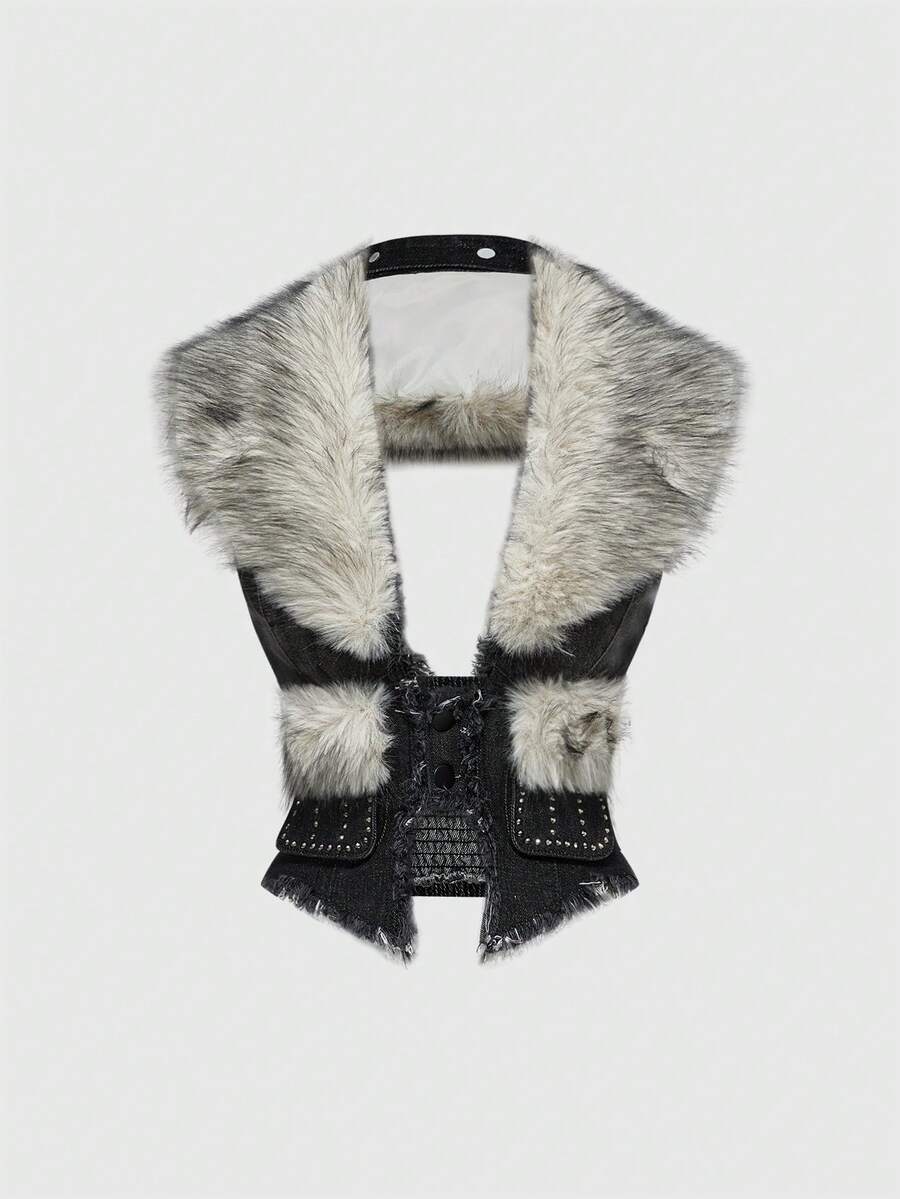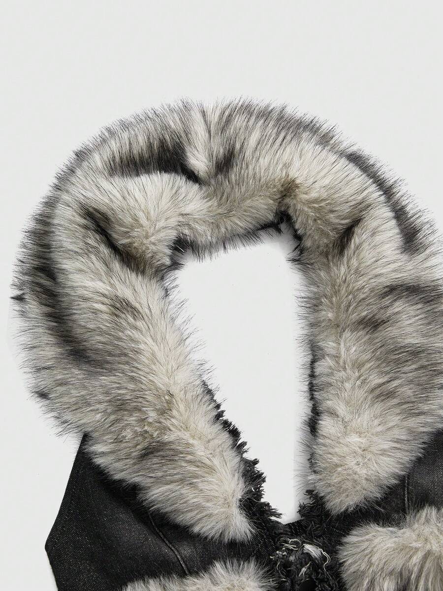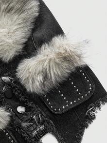 Hippie Y2K Retro Detachable Faux Fur Collar Denim Jacket For Women