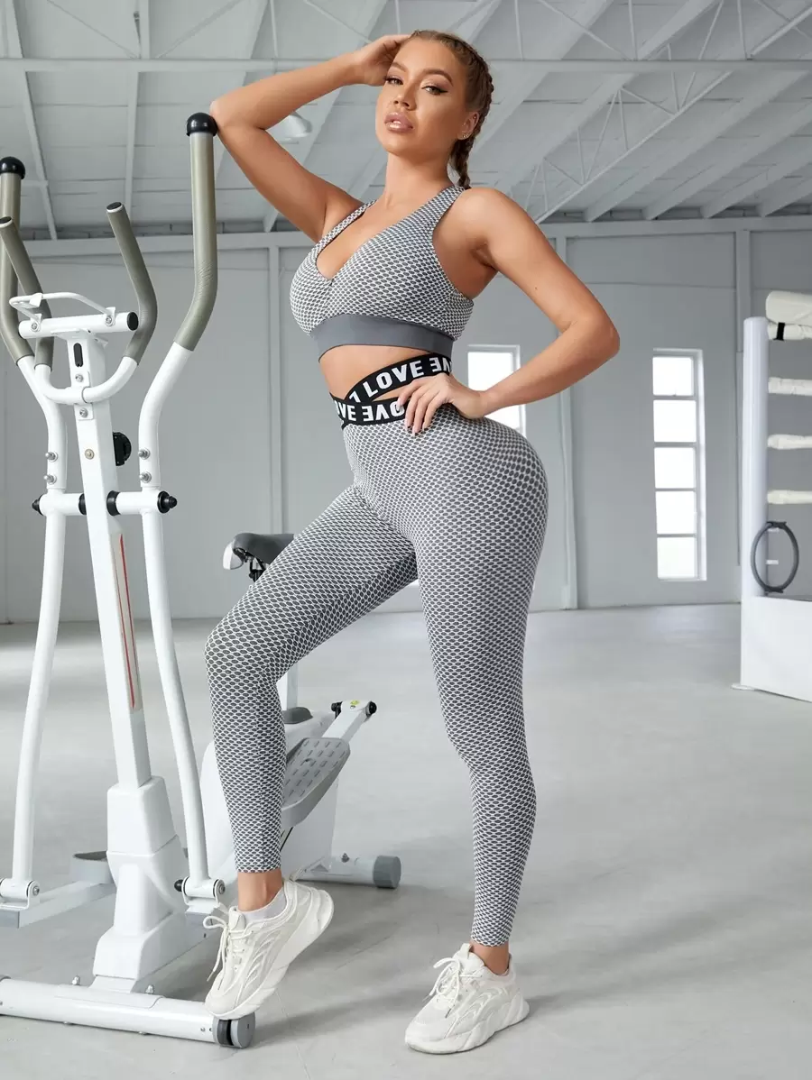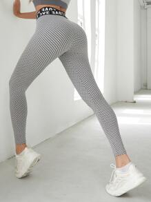 Honeycomb Textured Contrast Letter Tape Crisscross Sports Leggings