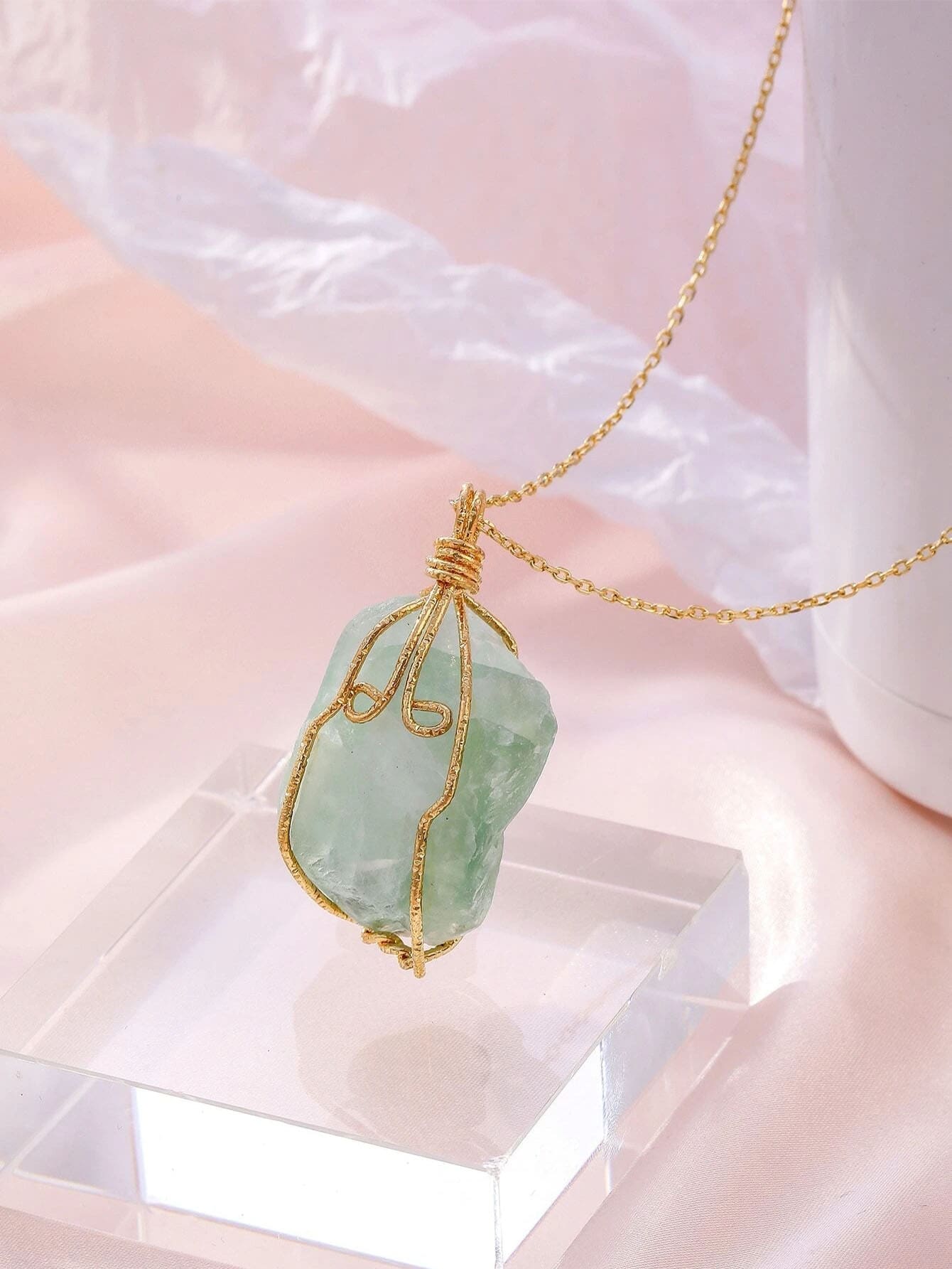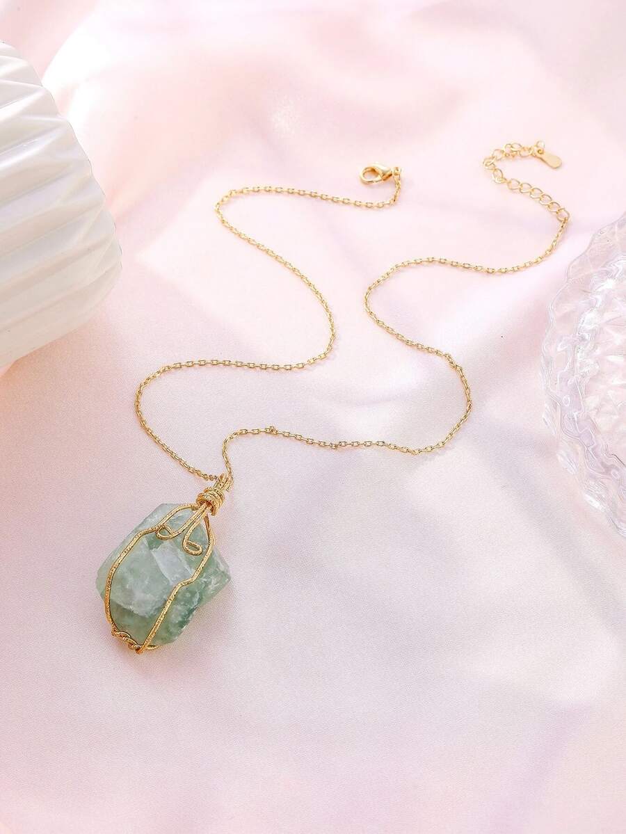 Asymmetric Stone Pendant Chain Necklace