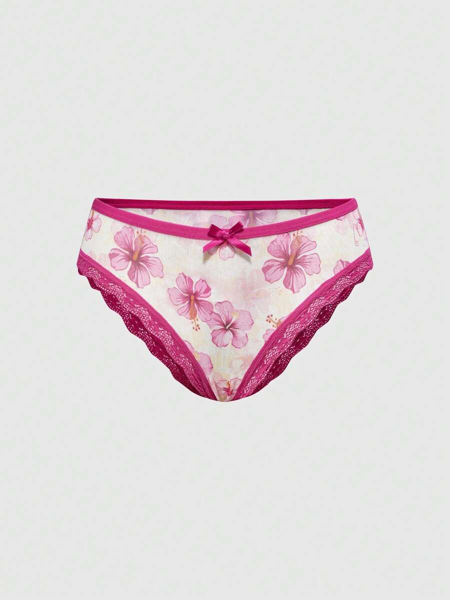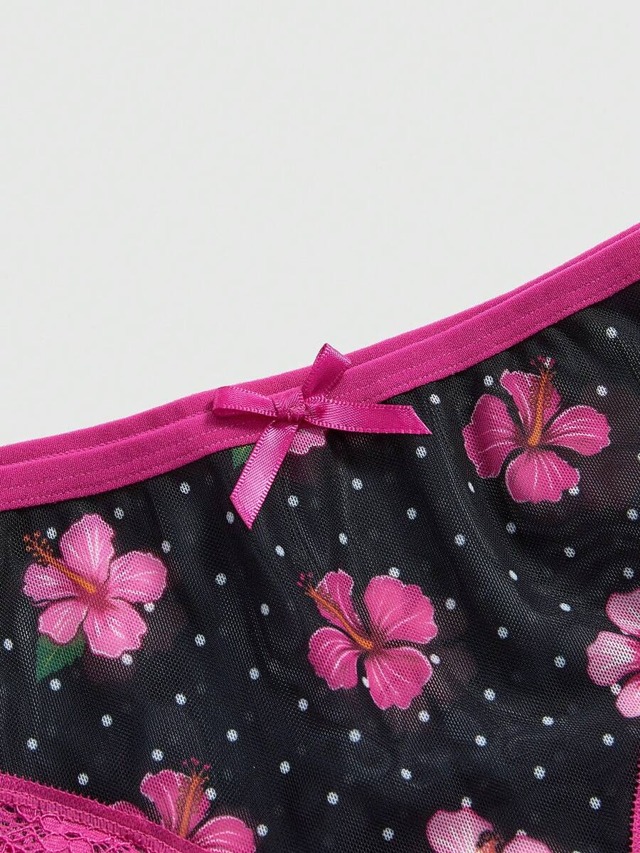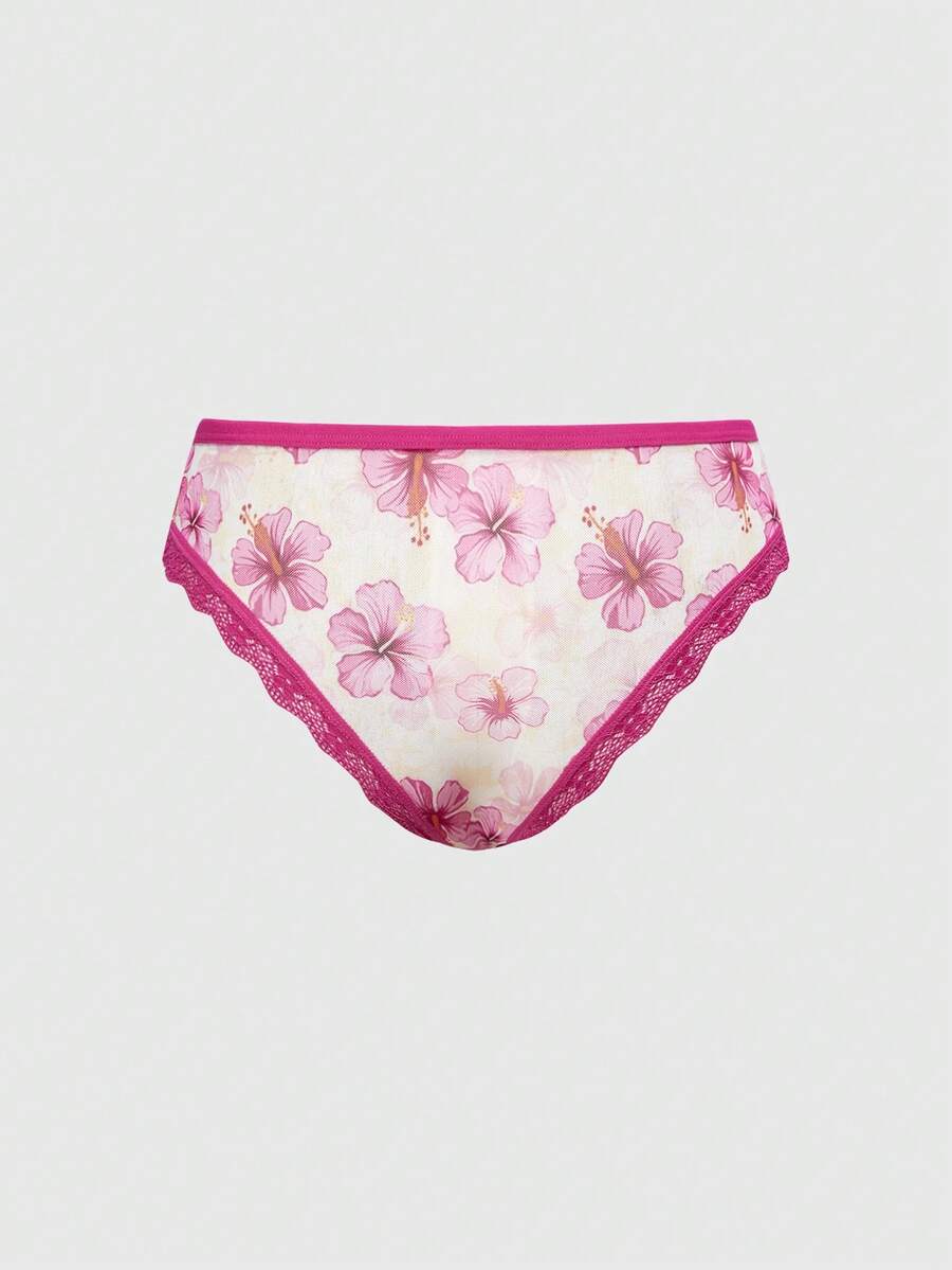 J-Fashion 3pcs/Set Women's Summer Beach Style Hibiscus Floral Mesh & Lace Trim Bikini Bottom Panties