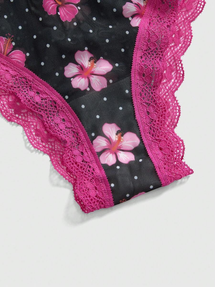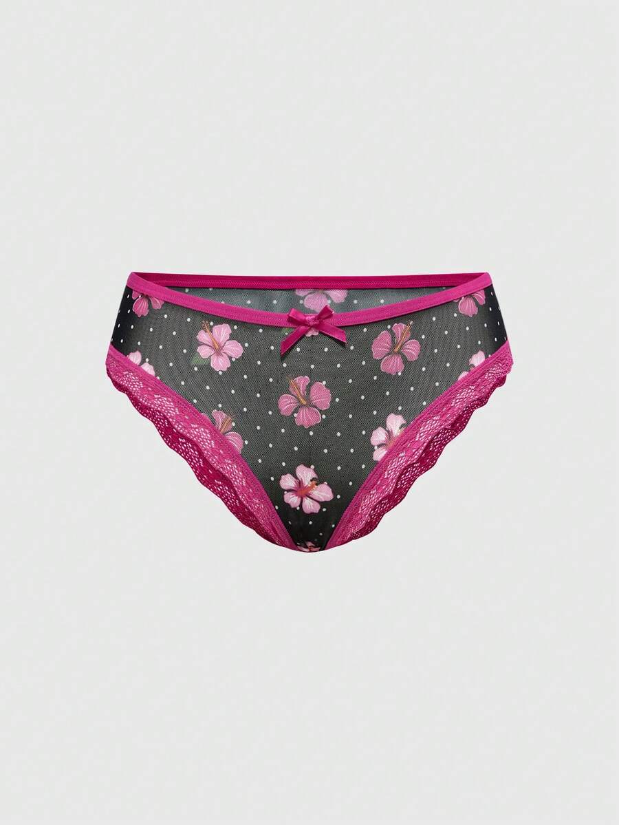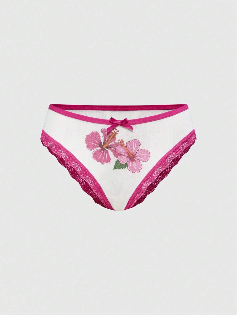 J-Fashion 3pcs/Set Women's Summer Beach Style Hibiscus Floral Mesh & Lace Trim Bikini Bottom Panties