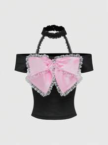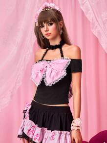 J-Fashion Hime Gyaru Style Butterfly Decor Kawaii Off Shoulder Women T-Shirt