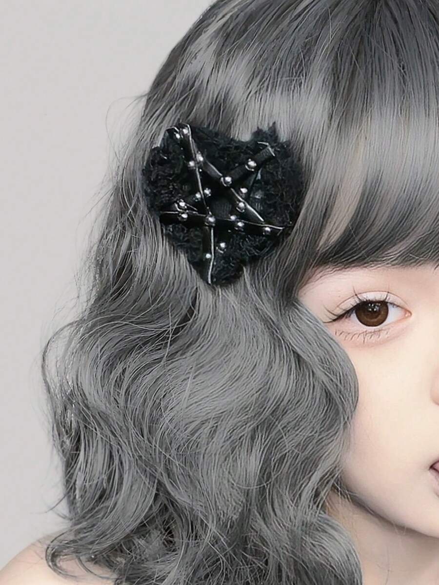 J-Fashion Leather Heart And Star Lace Hair Clip, Suitable As Hair Decoration For Women
