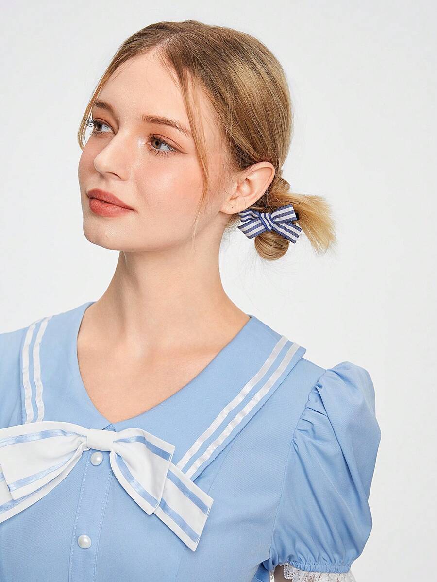 J-Fashion Nautical Striped Adorable Bow Hair Clip Claw Clips Hair Slide Hair Barrettes