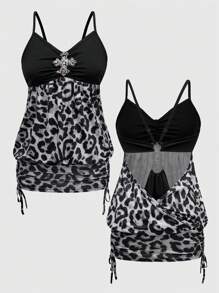 J-Fashion Plus Size Women Vintage Subculture Harajuku Y2K Leopard Print Splicing Look Dress